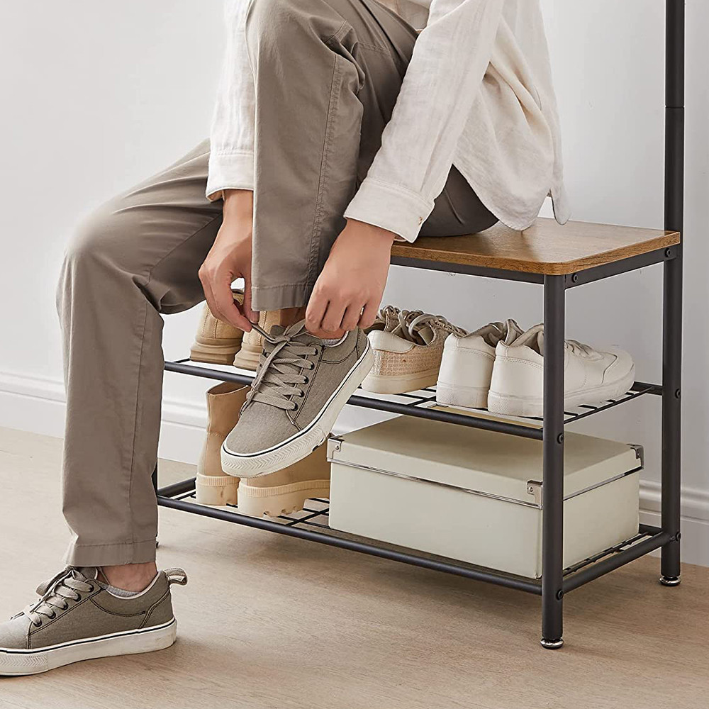 Ławka pełni funkcję zarówno miejsca do siedzenia, jak i przestrzeni do przechowywania. Dzięki nośności do 90 kg możesz wygodnie usiąść przy zakładaniu butów, a dolne półki świetnie sprawdzą się na obuwie, pudełka lub dekoracje.