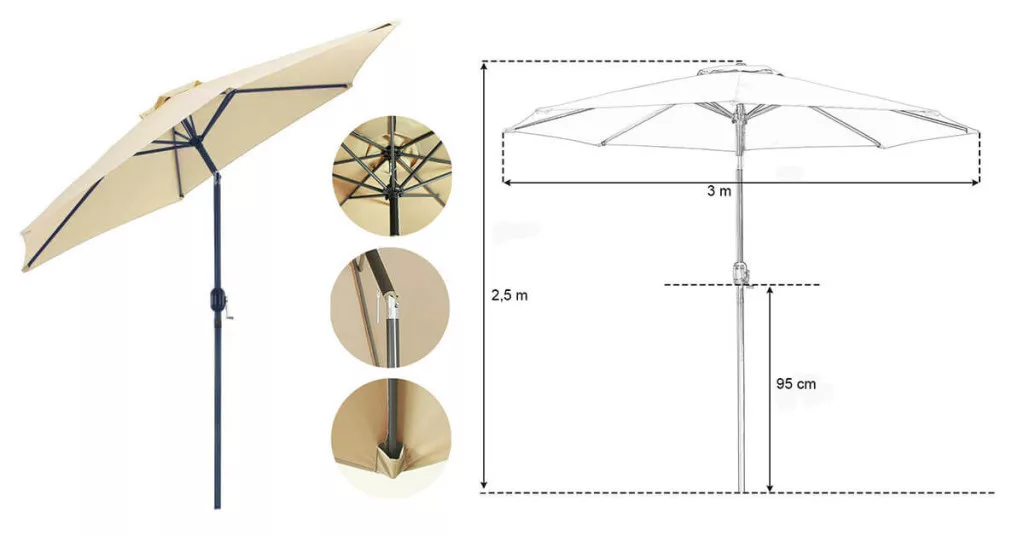Ekstra duży parasol o średnicy 2,7 metra zapewnia szeroki cień na lato. Idealny na obiad na tarasie lub relaks przy basenie – tworzy przyjemne, chłodne miejsce o każdej porze dnia.