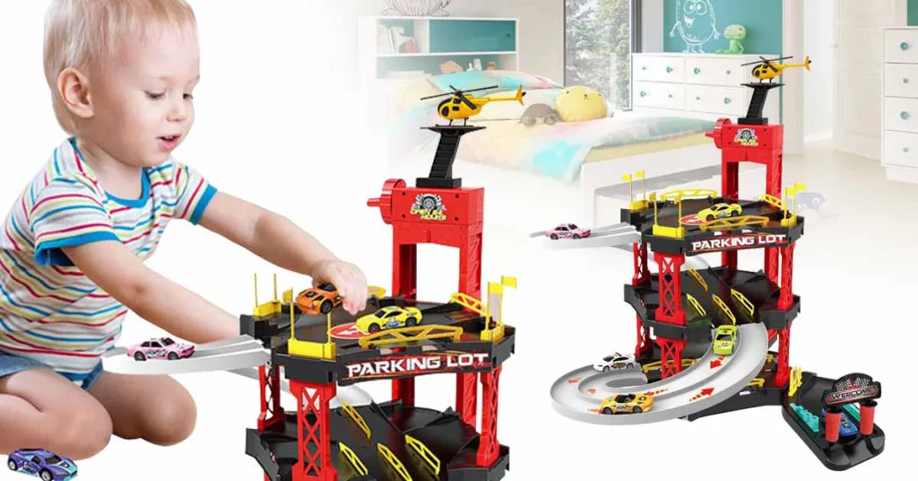 Na torze dzieci mogą ścigać się samochodzikami i naprawiać je w boxie. Dzięki wbudowanej windzie parking jest jeszcze ciekawszy, ponieważ pozwala na szybszy dostęp do poszczególnych poziomów i łatwiejsze zaparkowanie samochodzików. Jeżeli zabraknie im paliwa, wtedy mogą go szybko uzupełnić na mini stacji benzynowej.