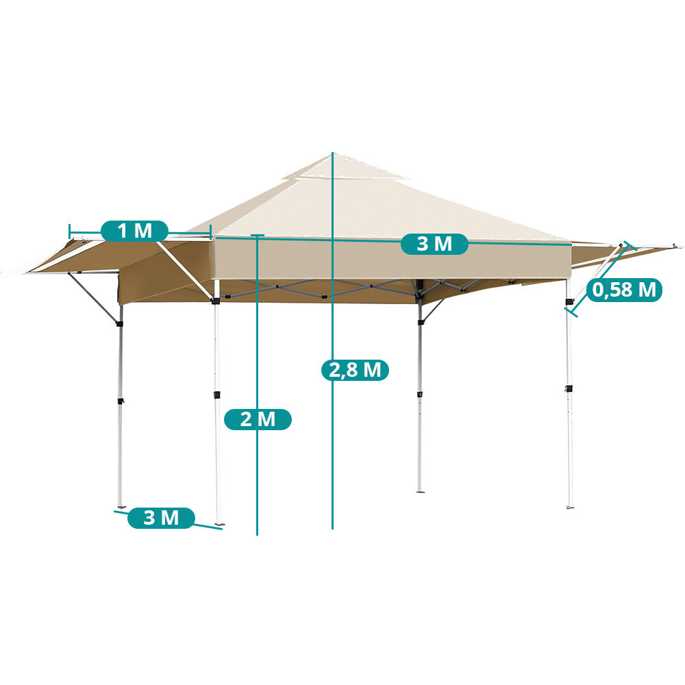 Niezależnie od tego, czy chodzi o spotkanie w ogrodzie, wypad na plażę czy stoisko targowe – ten pawilon to szybkie i niezawodne schronienie przed ostrym słońcem lub lekkim wiatrem. Jego konstrukcja umożliwia błyskawiczne rozstawienie i wygodne użytkowanie.
