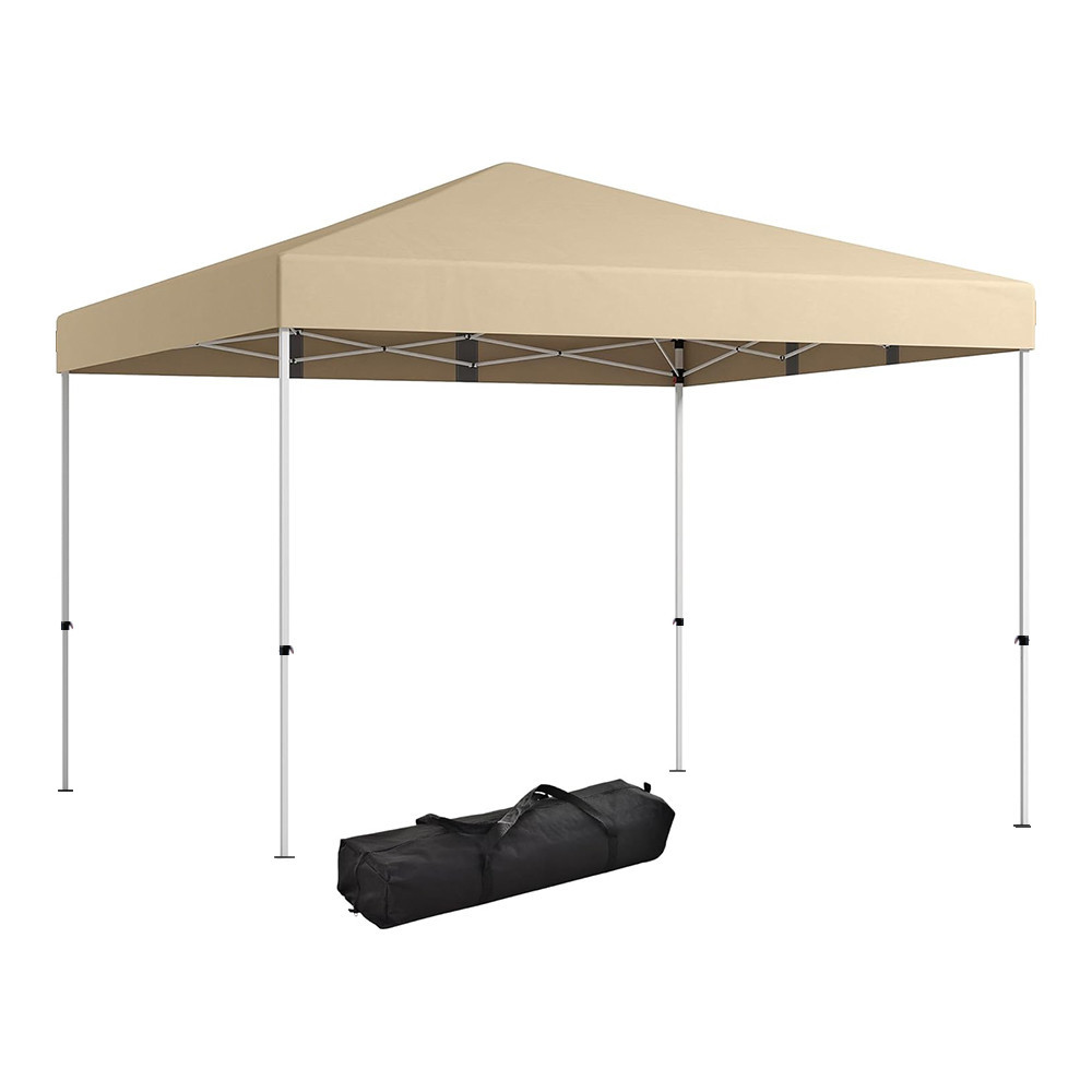 Ten beżowy, wodoodporny pawilon to szybkie rozwiązanie na zacienienie podczas wydarzeń, targów czy imprez ogrodowych. Łatwy w rozstawieniu, dzięki stabilnej konstrukcji zapewnia bezpieczną ochronę przed słońcem i lekkim wiatrem.