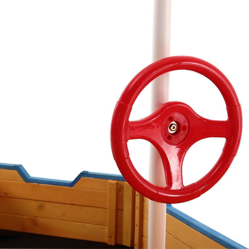 Piaskownica w kształcie statku pirackiego sprawia, że dzieci poczują się jak prawdziwi kapitanowie! Dziób statku, koło sterowe i flaga nadają jej realistyczny wygląd, a podest na rufie zapewnia dodatkowe możliwości zabawy. To coś więcej niż zabawka – to własny świat pełen przygód.