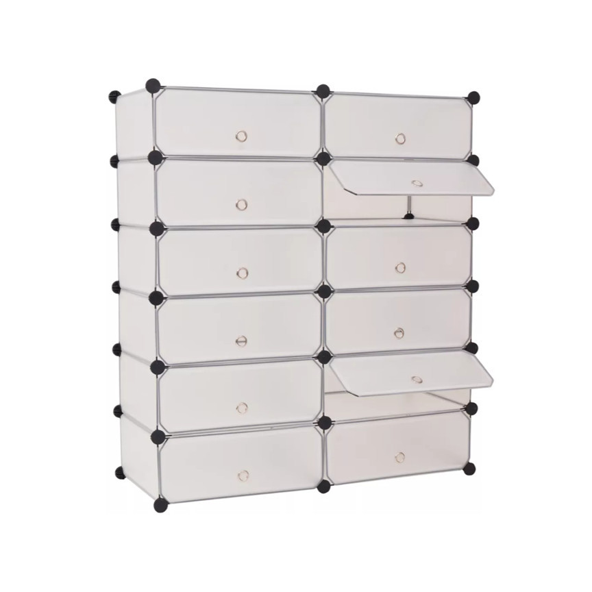 Szafka składa się z wytrzymałych plastikowych paneli oraz solidnych elementów łączących, co zapewnia lekką, ale stabilną opcję przechowywania. Dzięki elementom łatwym do zatrzaskowego montażu, regał można szybko złożyć i w razie potrzeby łatwo przekształcić w inną konfigurację.