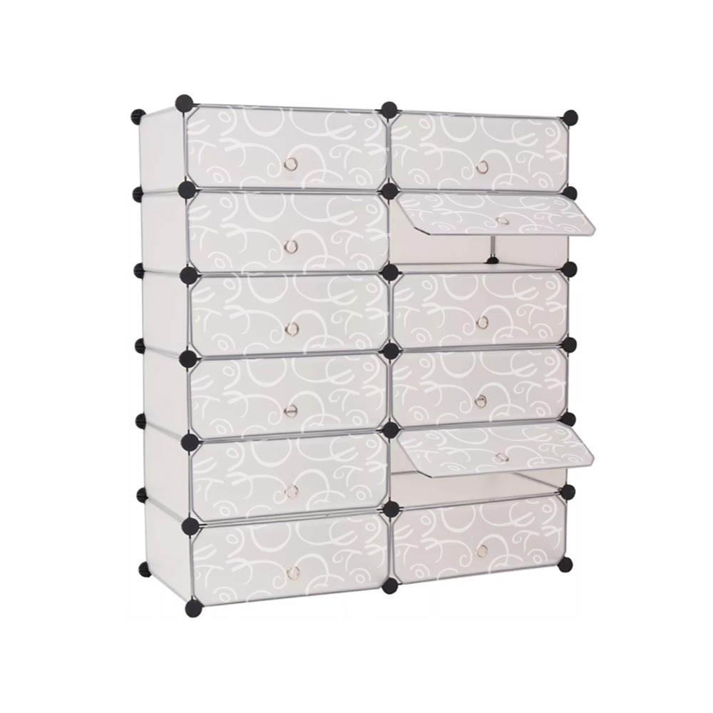 Regał można złożyć w dwóch wariantach. Jeśli potrzebujesz szerszego, niższego układu, możesz ułożyć 2 kolumny i 6 rzędów przegródek. Jeśli natomiast preferujesz węższą, wyższą konstrukcję, możesz ustawić 9 przegródek jedna na drugiej w jednej kolumnie.