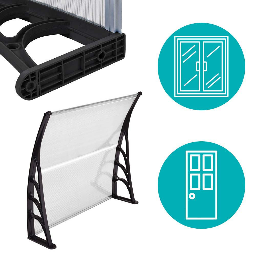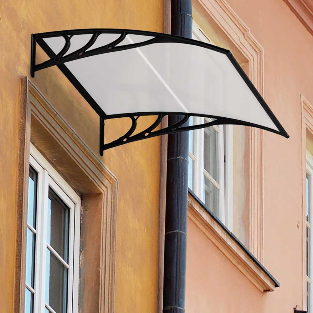 Zadaszenie oferowane jest w różnych rozmiarach, co pozwala na idealne dopasowanie do każdego wejścia. Dostępne są dwie wersje kolorystyczne: przezroczysty dach z czarnymi lub białymi krawędziami, co sprawia, że doskonale komponuje się z różnymi elewacjami budynków.