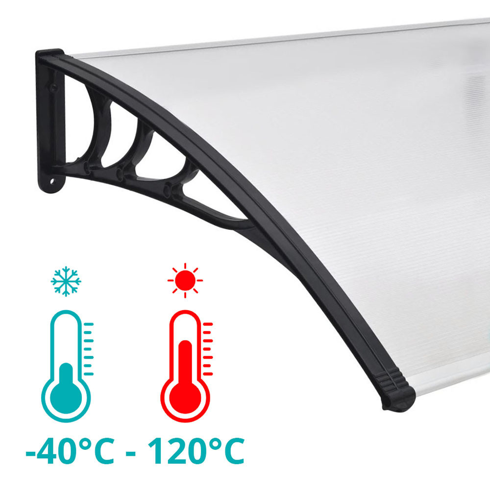 Dzięki dołączonym elementom mocującym montaż zadaszenia jest szybki i prosty. Można łączyć kilka modułów, aby dostosować konstrukcję do dłuższych wejść czy tarasów. Ścienne wsporniki o długości 24 cm gwarantują stabilne i bezpieczne mocowanie.