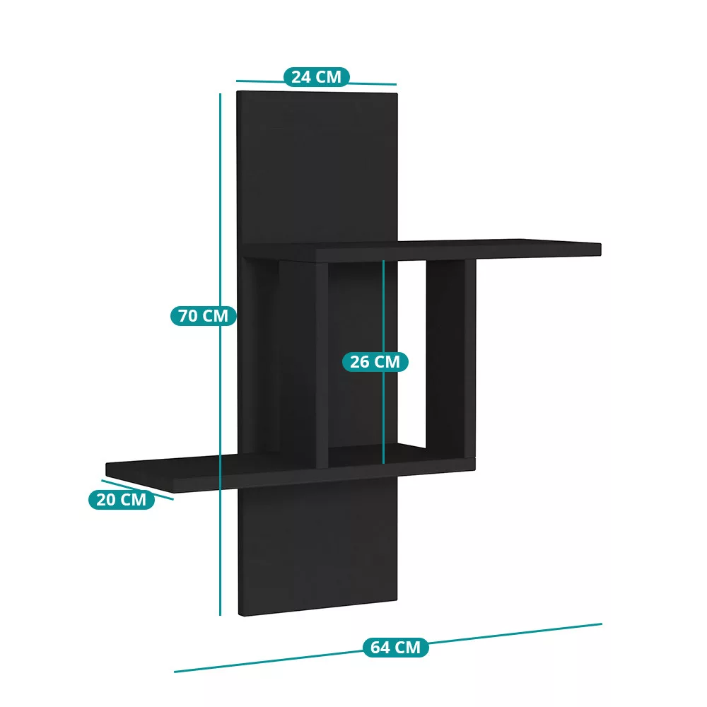 Wielopoziomowy design jest idealny do umieszczania książek, przedmiotów dekoracyjnych, roślin lub zdjęć. Dzięki kompaktowej głębokości 20 cm, doskonale nadaje się również do mniejszych pomieszczeń.