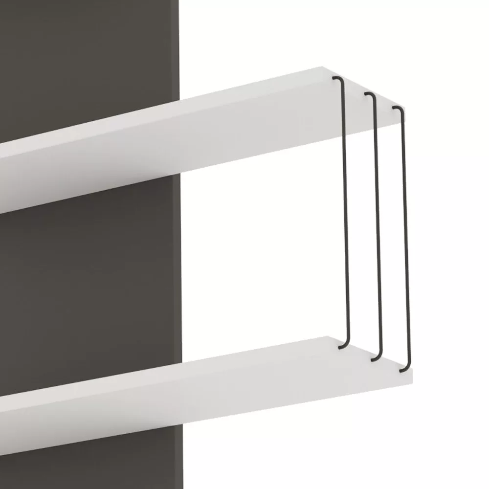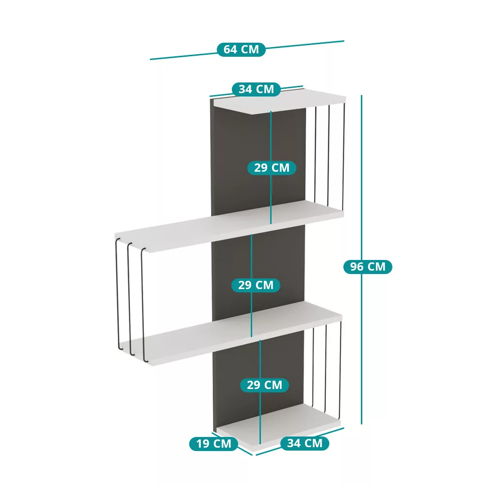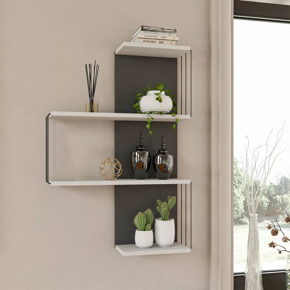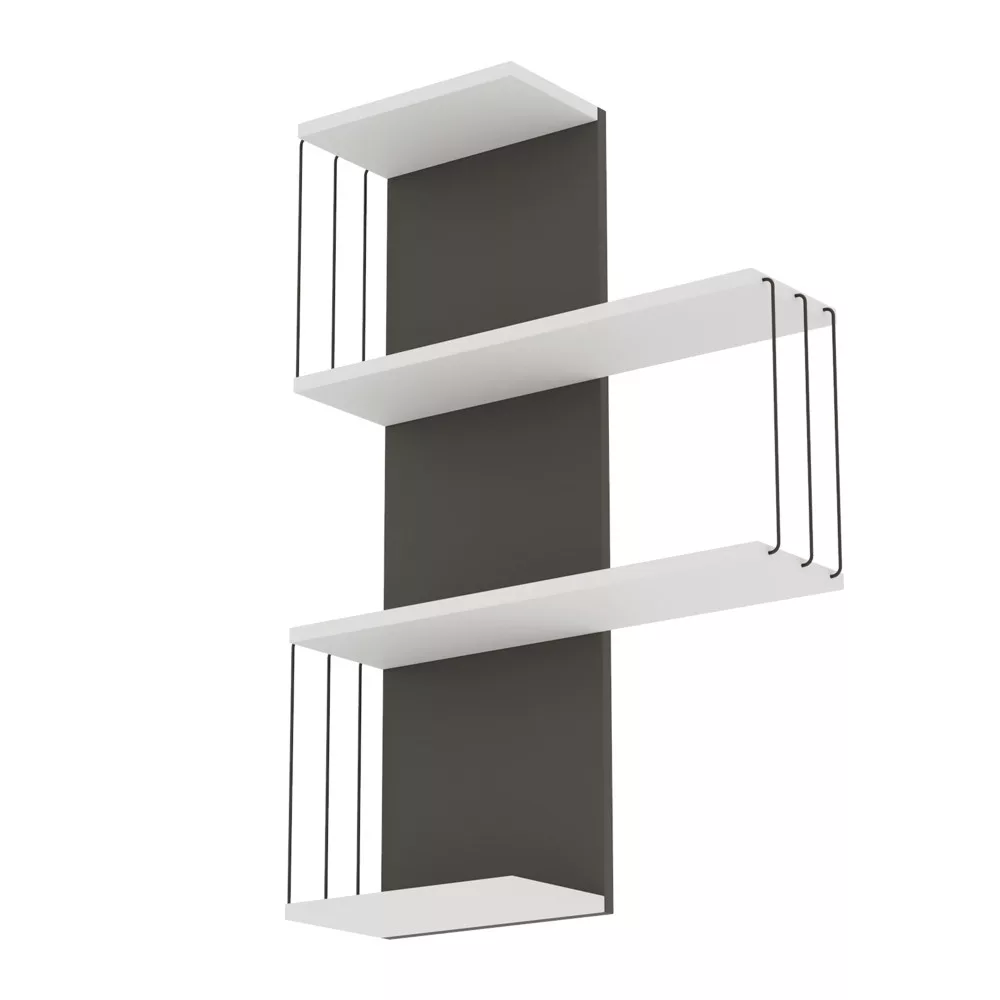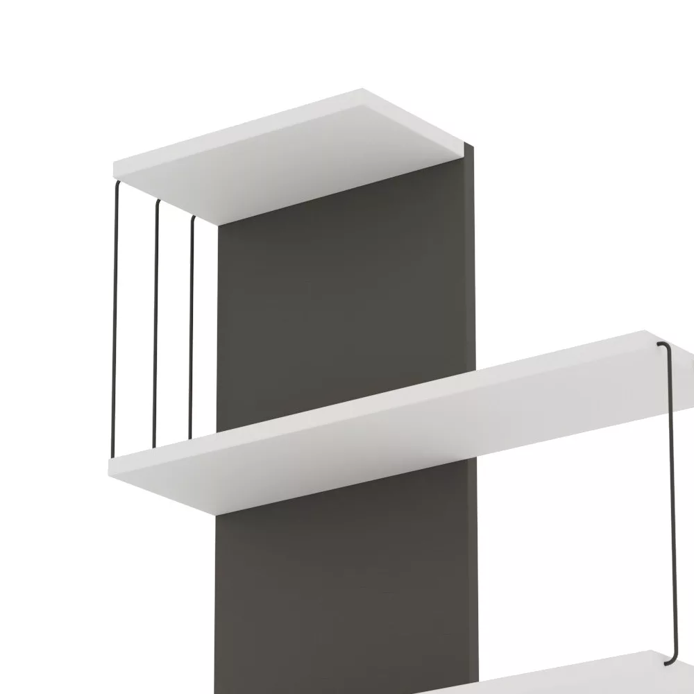 Połączenie bieli i antracytu oferuje nowoczesny, elegancki wygląd. Geometryczny układ przekształca ją w oszałamiającą dekorację ścienną, jednocześnie zapewniając praktyczną powierzchnię do przechowywania.