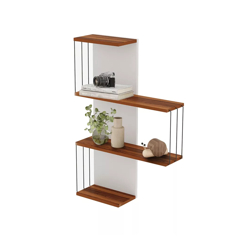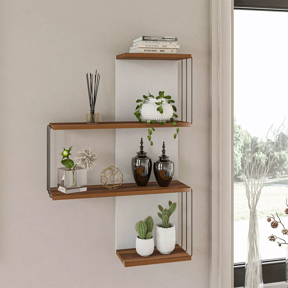 Różnej wielkości półki są idealne do umieszczania książek, przedmiotów dekoracyjnych, roślin lub mniejszych akcesoriów. Pomaga to w zorganizowanym i estetycznym wykorzystaniu przestrzeni na ścianie.