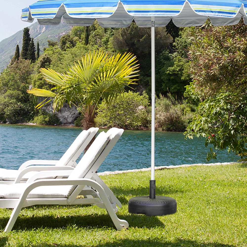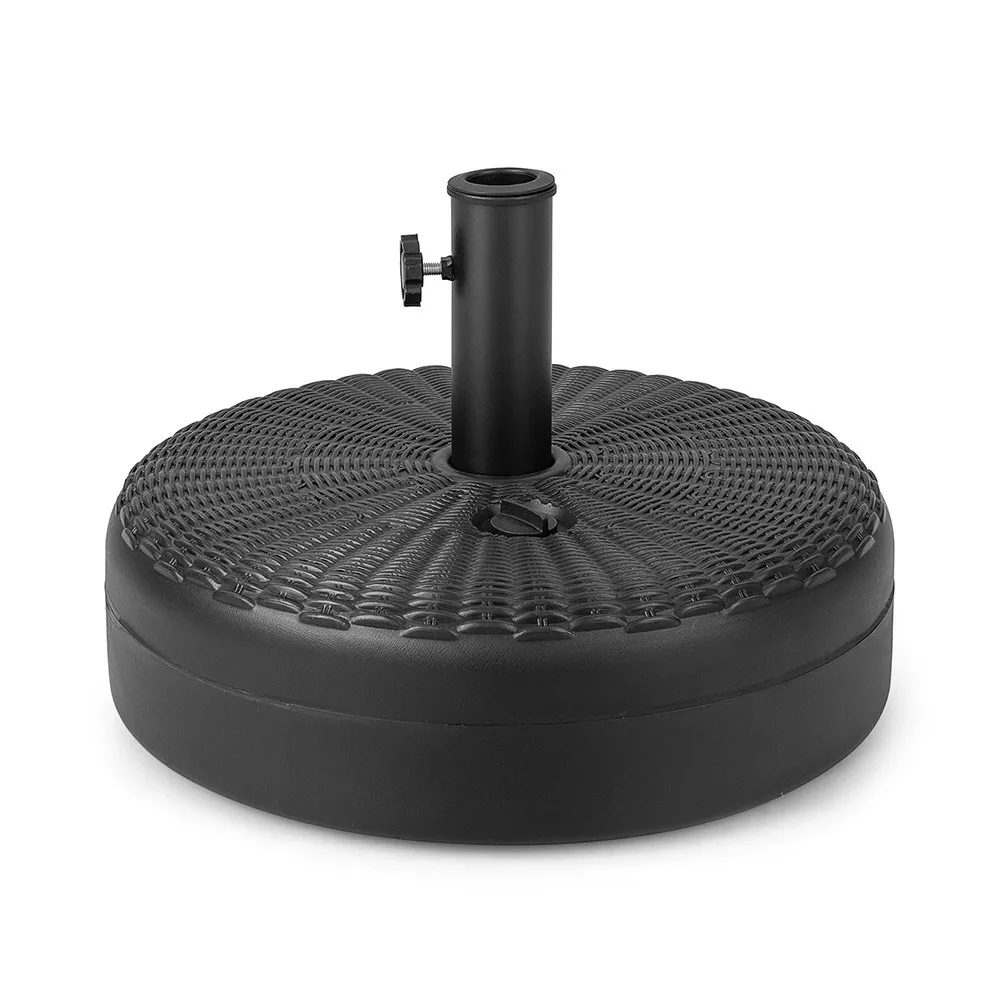 Wewnętrzny zbiornik podstawy można napełnić wodą lub piaskiem, co pozwala na dostosowanie całkowitej wagi do Twoich potrzeb. Przy maksymalnej pojemności waga zapewnia stabilność parasola nawet w wietrznych warunkach, a w pustym stanie jest łatwa do transportu.