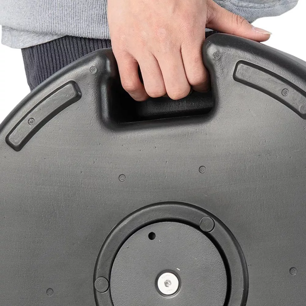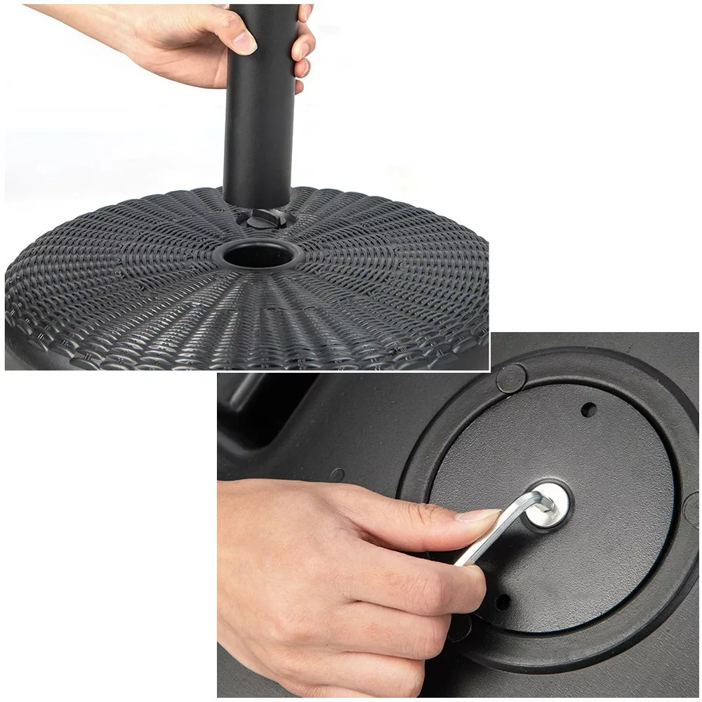 Dzięki wbudowanemu uchwytowi do przenoszenia, podstawa jest łatwa do przemieszczania. Montaż można zakończyć w kilku krokach: po przymocowaniu rurki i dokręceniu śruby zaciskowej, zbiornik można napełnić wodą lub piaskiem, a parasol można bezpiecznie zamocować.