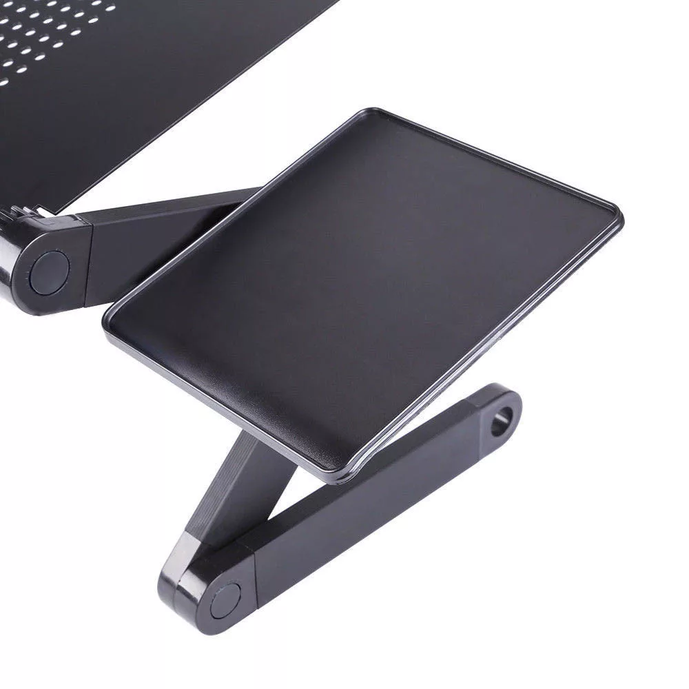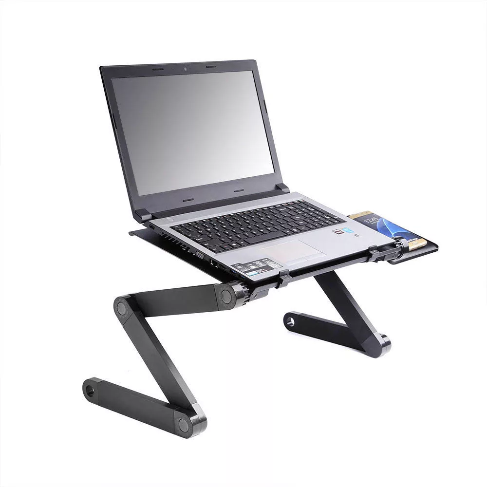 Stojak na laptopa można regulować w wielu punktach, co zapewnia maksymalny komfort podczas pracy w pozycji leżącej, siedzącej lub stojącej. To idealne rozwiązanie do pracy w domu lub biurze, nauki, a także do rozrywki. Dodatkowa boczna podkładka pod mysz zwiększa ergonomię użytkowania.