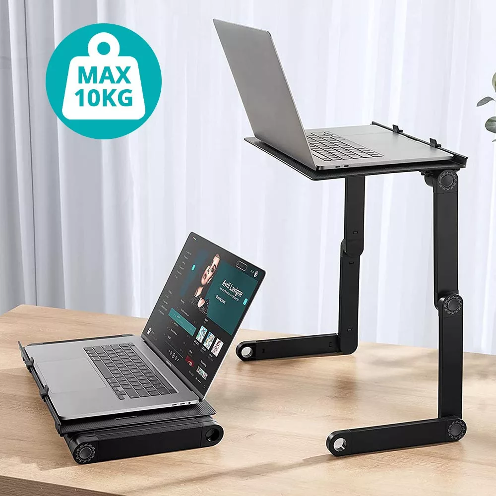 Ten stojak na laptopa pasuje do każdego modelu laptopa dzięki uniwersalnym wymiarom i dużej wytrzymałości (maks. 10 kg). Wykonany z aluminium i tworzywa sztucznego, jest lekki, a jednocześnie wyjątkowo wytrzymały. Waży zaledwie 1,2 kg, co sprawia, że łatwo go przenosić i przechowywać.