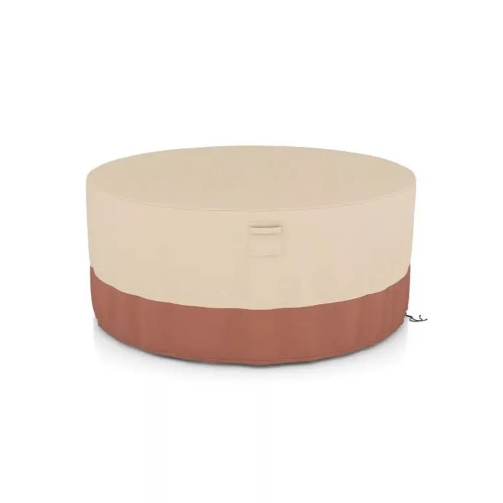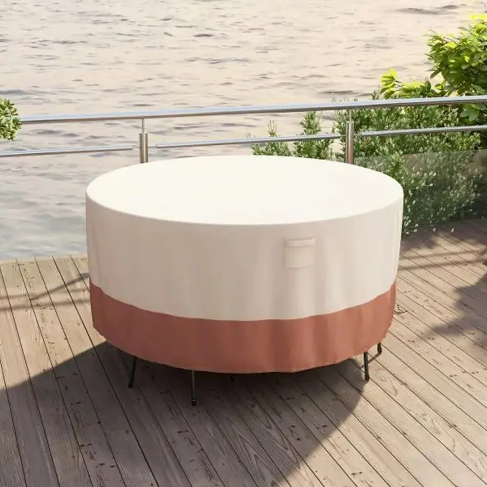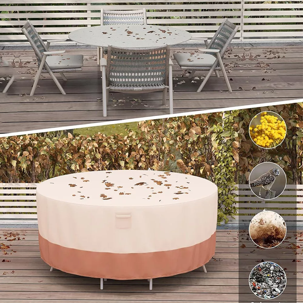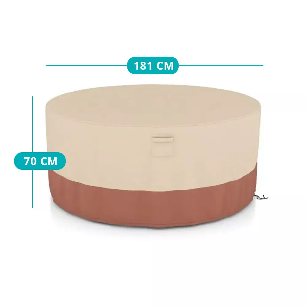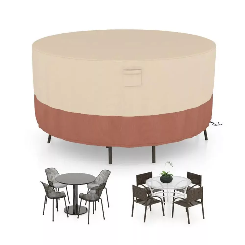Dzięki okrągłemu kształtowi, pokrowiec pasuje do różnych zestawów mebli. Aby uzyskać precyzyjne dopasowanie, zaleca się wcześniejsze zmierzenie rozmiaru mebli, szczególnie głębokości krzeseł.