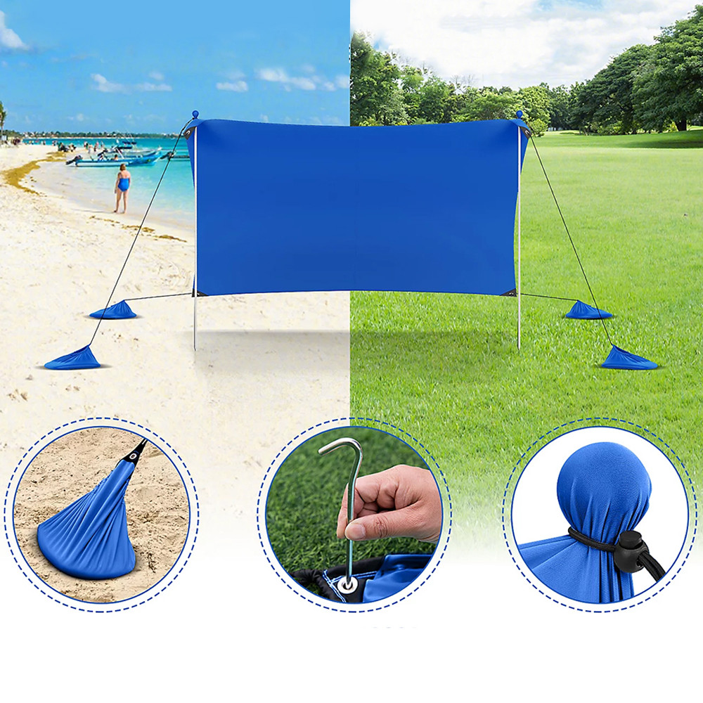 4 napełniane worki z piaskiem, wraz z linami przeciwwiatrowymi i kołkami, zapewniają pewne mocowanie na różnych terenach, czy to na piasku, trawie, czy glebie.