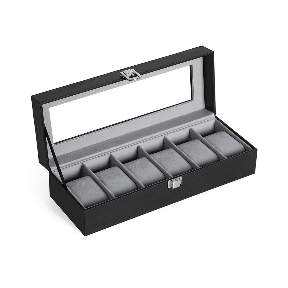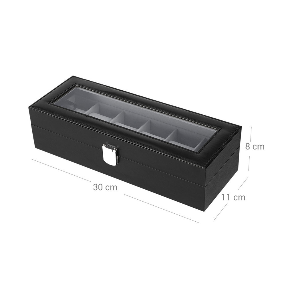 Dzięki przezroczystej pokrywie z szkła zegarki są zawsze widoczne, a jednocześnie chronione przed kurzem. Wystarczy jedno spojrzenie, by wybrać zegarek na dany dzień – wszystkie prezentują się elegancko i schludnie.