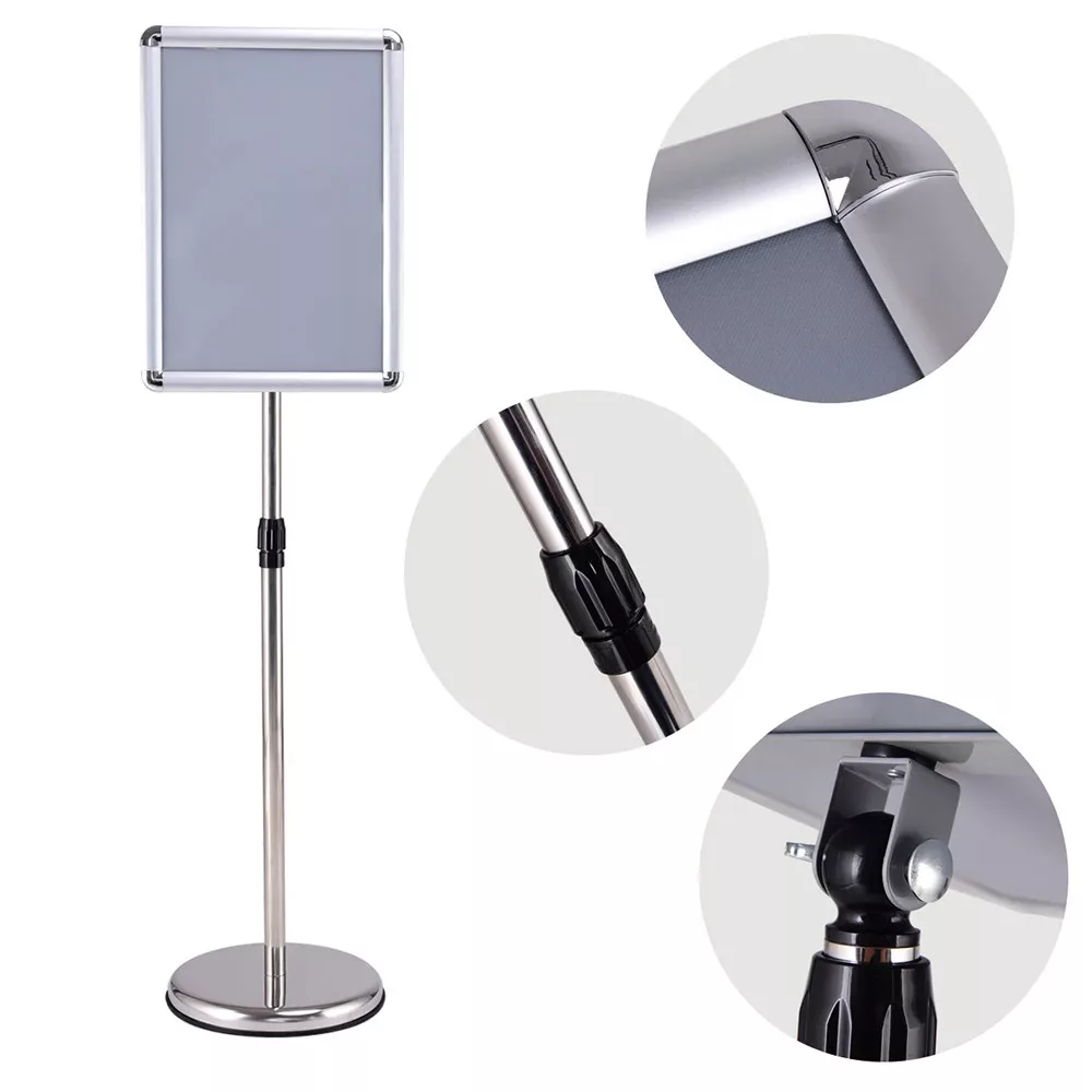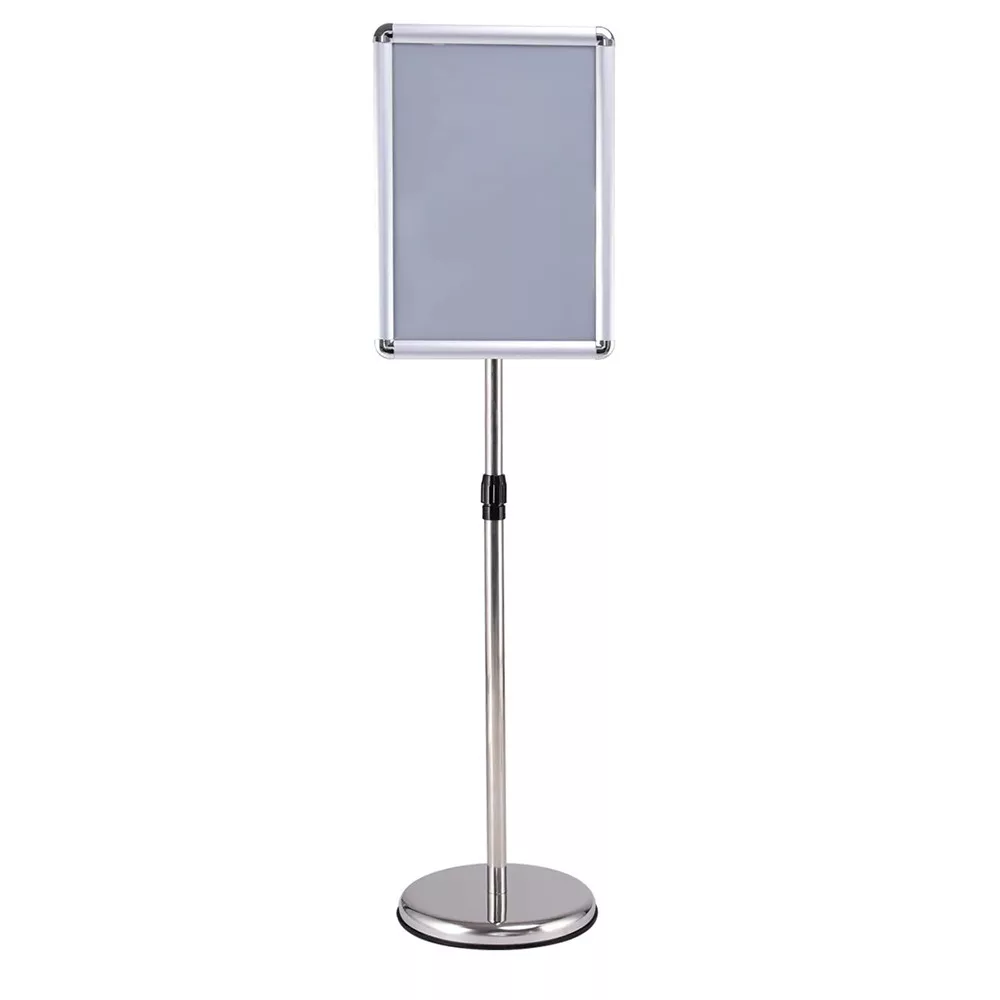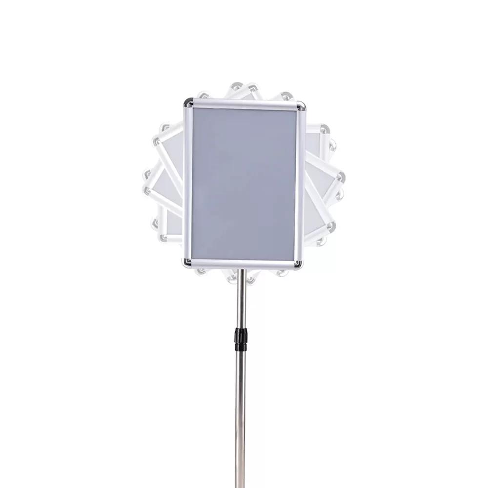 Wysokość stojaka można swobodnie regulować w zakresie od około 89,5 do 134 cm, a stelaż można obracać o 360° w pożądanej pozycji. Dzięki temu treści są łatwo widoczne i dostępne z każdej strony dla odwiedzających lub klientów.