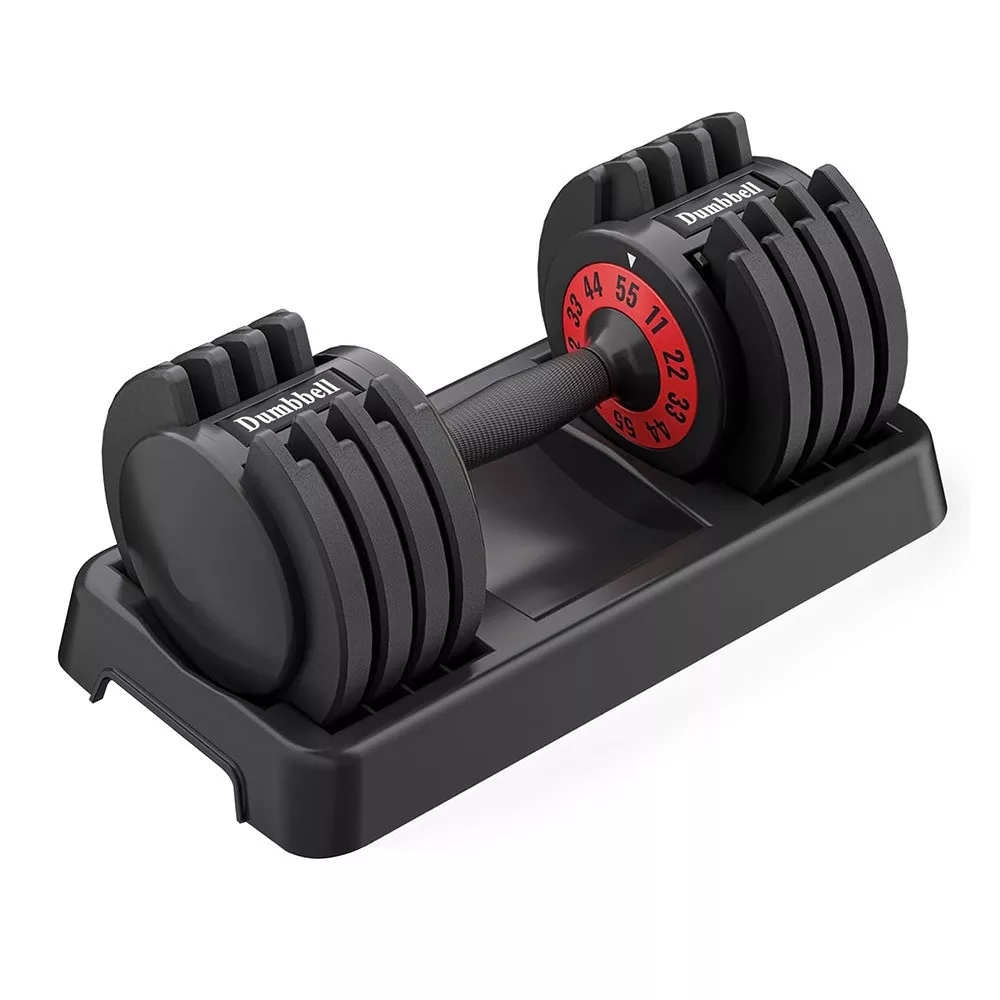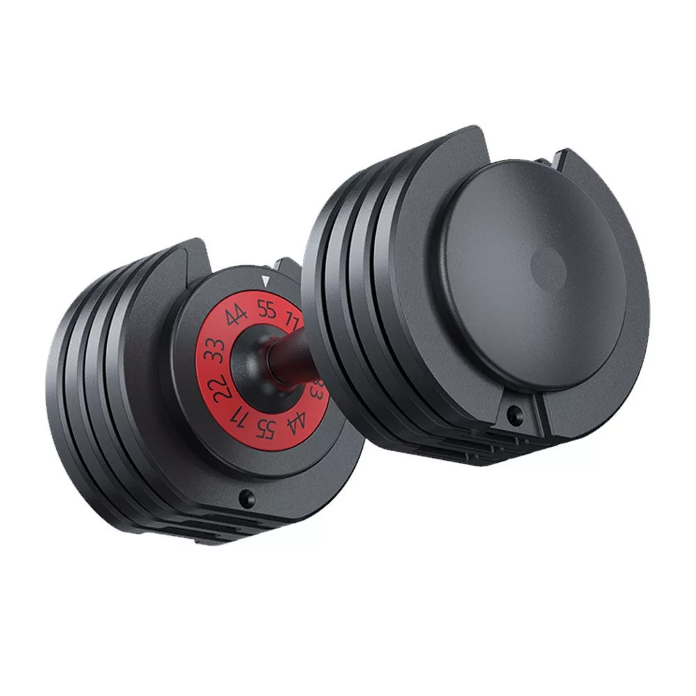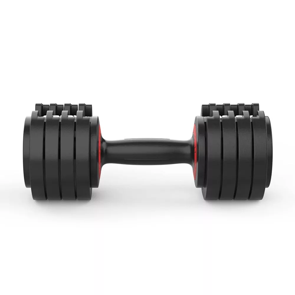Ten regulowany hantel jednoręczny pozwala na dostosowanie wagi od 1,8 kg do 11,5 kg, dzięki czemu sprawdzi się w każdym rodzaju treningu. Talerze z żeliwa zapewniają precyzyjne rozłożenie ciężaru, co pozwala na bardziej intensywne sesje treningowe. Dzięki wymiarom 35 cm szerokości i 16 cm wysokości hantel jest łatwy do przechowywania i zajmuje niewiele miejsca.