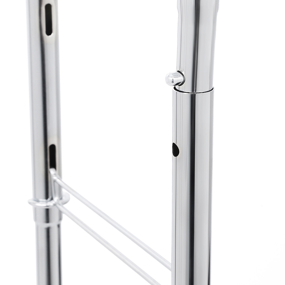 Chromowana powierzchnia nadaje stojakowi nowoczesny, elegancki wygląd. Gładkie, błyszczące wykończenie jest odporne na korozję, dzięki czemu konstrukcja zachowuje doskonały stan przez długi czas.