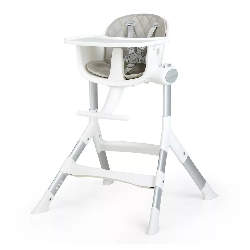 Solidna, a jednocześnie lekka aluminiowa rama zapewnia niezawodne wsparcie, a szerokie nogi z antypoślizgowymi stopkami gwarantują maksymalną stabilność. Wbudowany 5-punktowy pas bezpieczeństwa i krawędź zapobiegająca przewróceniu oferują dodatkową ochronę podczas posiłków lub zabawy.