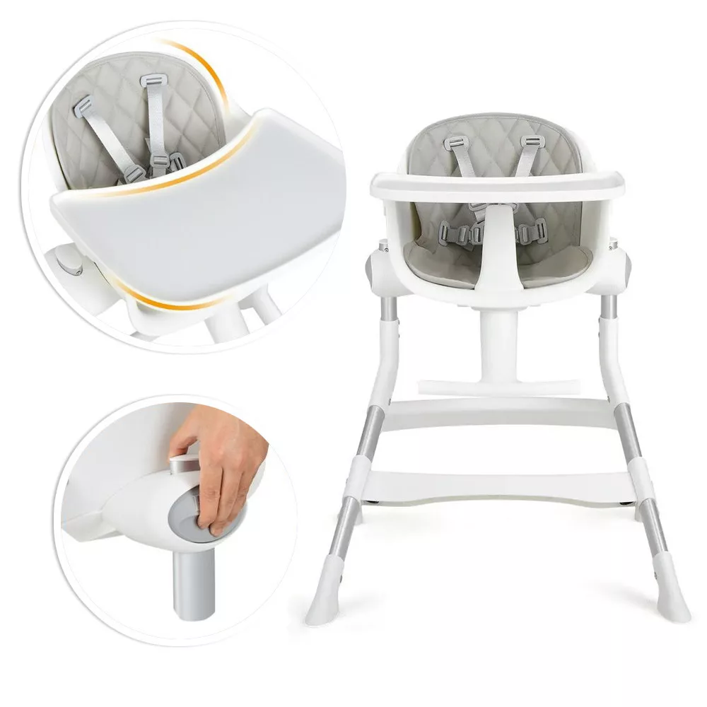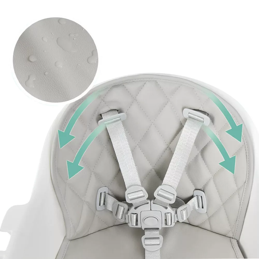 Miękka, zdejmowana poduszka zapewnia wygodne siedzenie nawet dla najmniejszych. Tacka do karmienia wolna od BPA jest bezpieczna w zmywarce, co sprawia, że sprzątanie jest szybkie i łatwe – idealne do codziennego użytku.