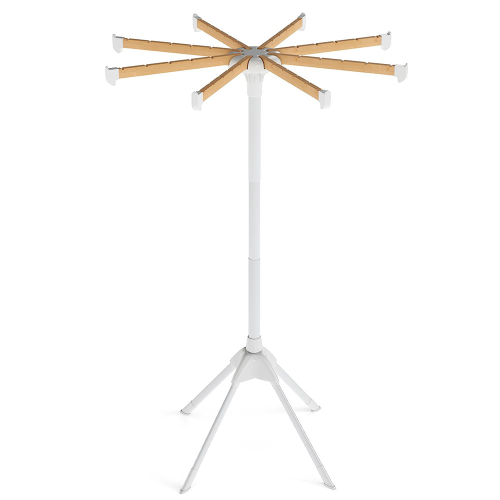 Pręty można otwierać i zamykać indywidualnie, co umożliwia użycie wieszaka w konfiguracjach 90°, 180°, 270° lub nawet 360°. Nadaje się zarówno do suszenia na wieszaku, jak i na płasko.