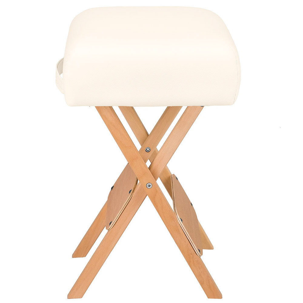 Mechanizm składania fotela umożliwia jego łatwe przenoszenie i przechowywanie, dzięki czemu doskonale sprawdzi się także dla mobilnych masażystów. Stabilna, drewniana rama wytrzymuje obciążenie do 150 kg, a kompaktowe wymiary pozwalają na wygodne przechowywanie nawet w niewielkich przestrzeniach.