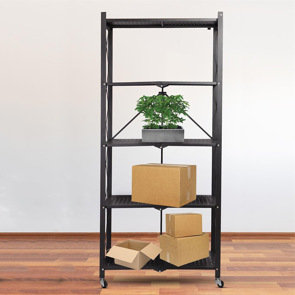 Wykonany z kombinacji aluminium i stali, wózek jest solidny, ale lekki. Posiada pięć półek, co pozwala na uporządkowane przechowywanie dużych przyborów kuchennych lub sprzętów domowych.
