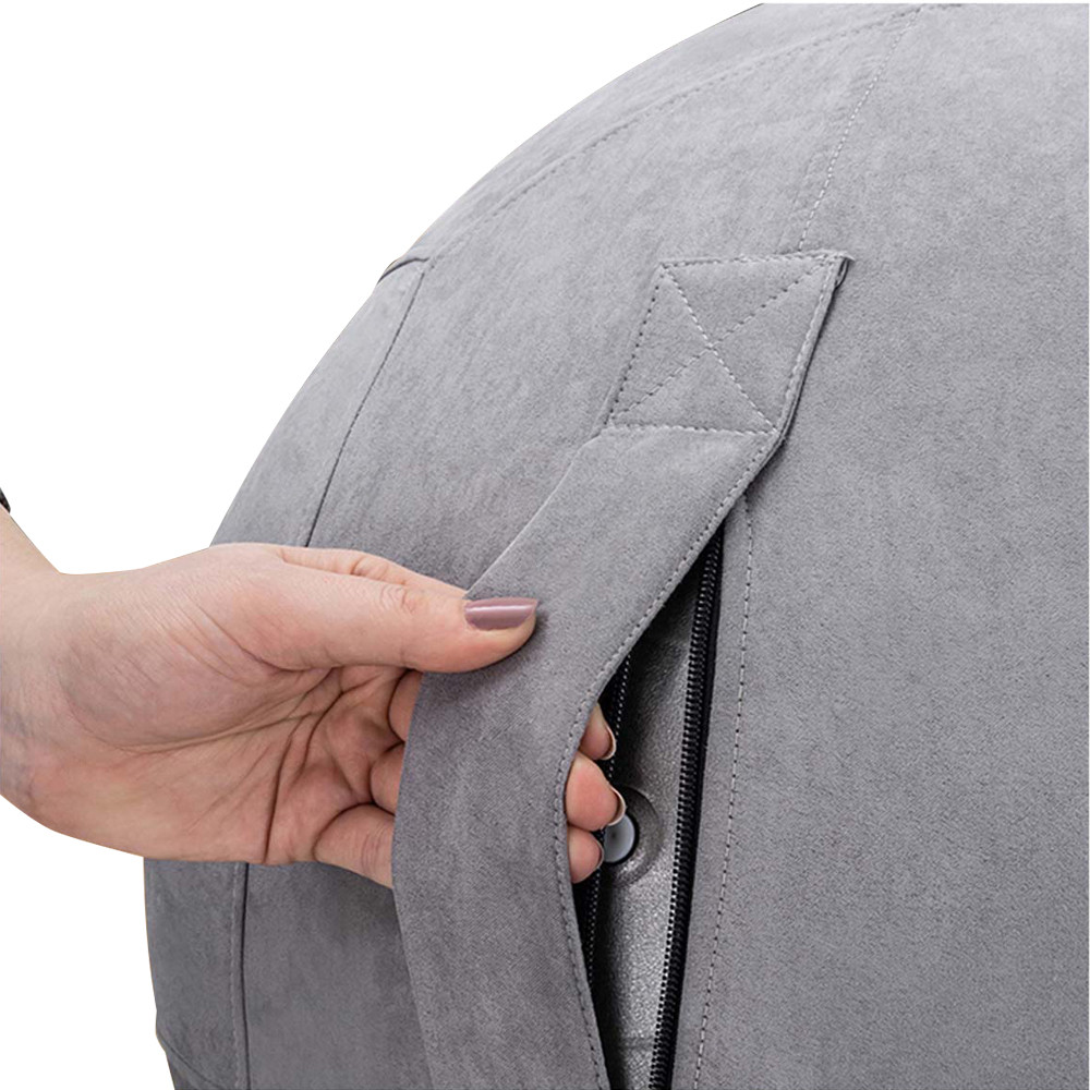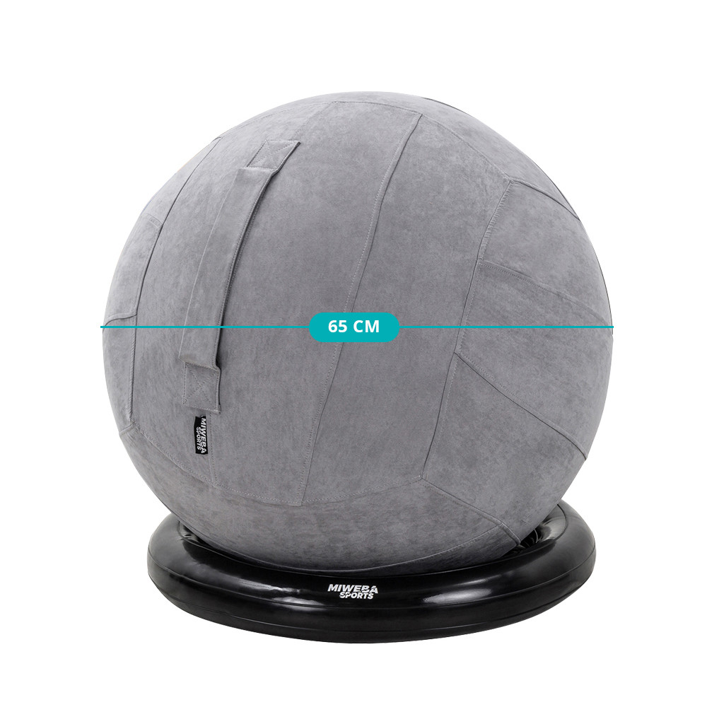A berobbanásbiztos PVC anyag fokozatos levegőeresztést biztosít ami növeli a használat biztonságát. A nagy teherbírás lehetővé teszi, hogy a labda üléshez és edzéshez egyaránt stabilan használható legyen. Levehető, mosható velúr hatású szövethuzattal.