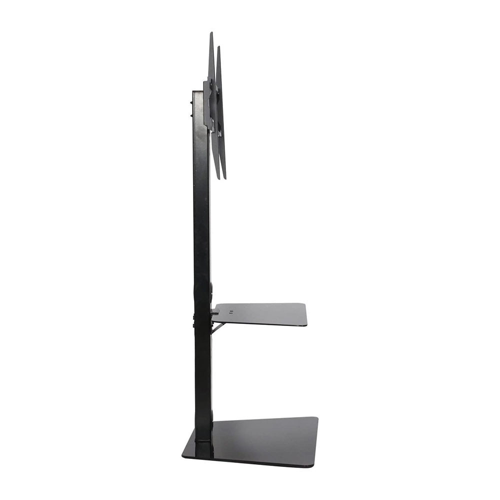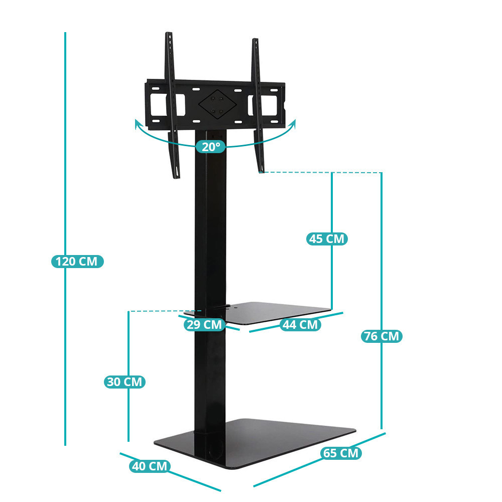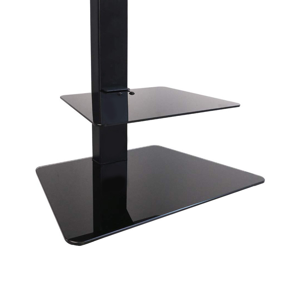 Wbudowana szklana półka (40x26 cm) to idealne miejsce na odtwarzacz DVD, głośniki lub inne urządzenia. Nowoczesna konstrukcja z metalu i szkła nadaje elegancki wygląd Twojemu domowi lub biuru.