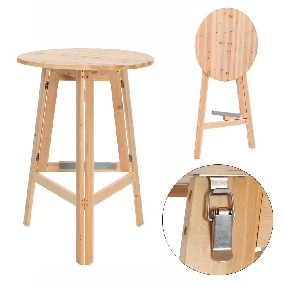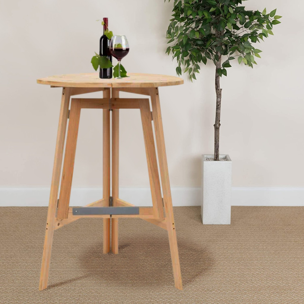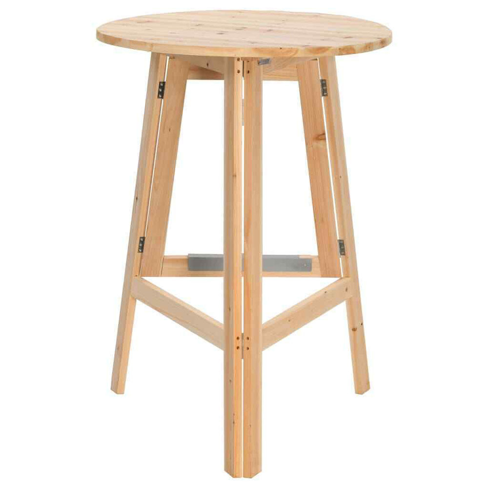 Naturalny, nieimpregnowany materiał z sosny zapewnia solidność i długowieczność, co czyni stół niezawodnym towarzyszem na różnorodnych wydarzeniach. Trójnożna konstrukcja jest nie tylko estetyczna, ale także stabilna, niezależnie od tego, czy używasz stołu w pomieszczeniach, czy na świeżym powietrzu. Powierzchnia blatu o średnicy 75 cm oferuje wystarczająco dużo miejsca na napoje, potrawy i dekoracje.