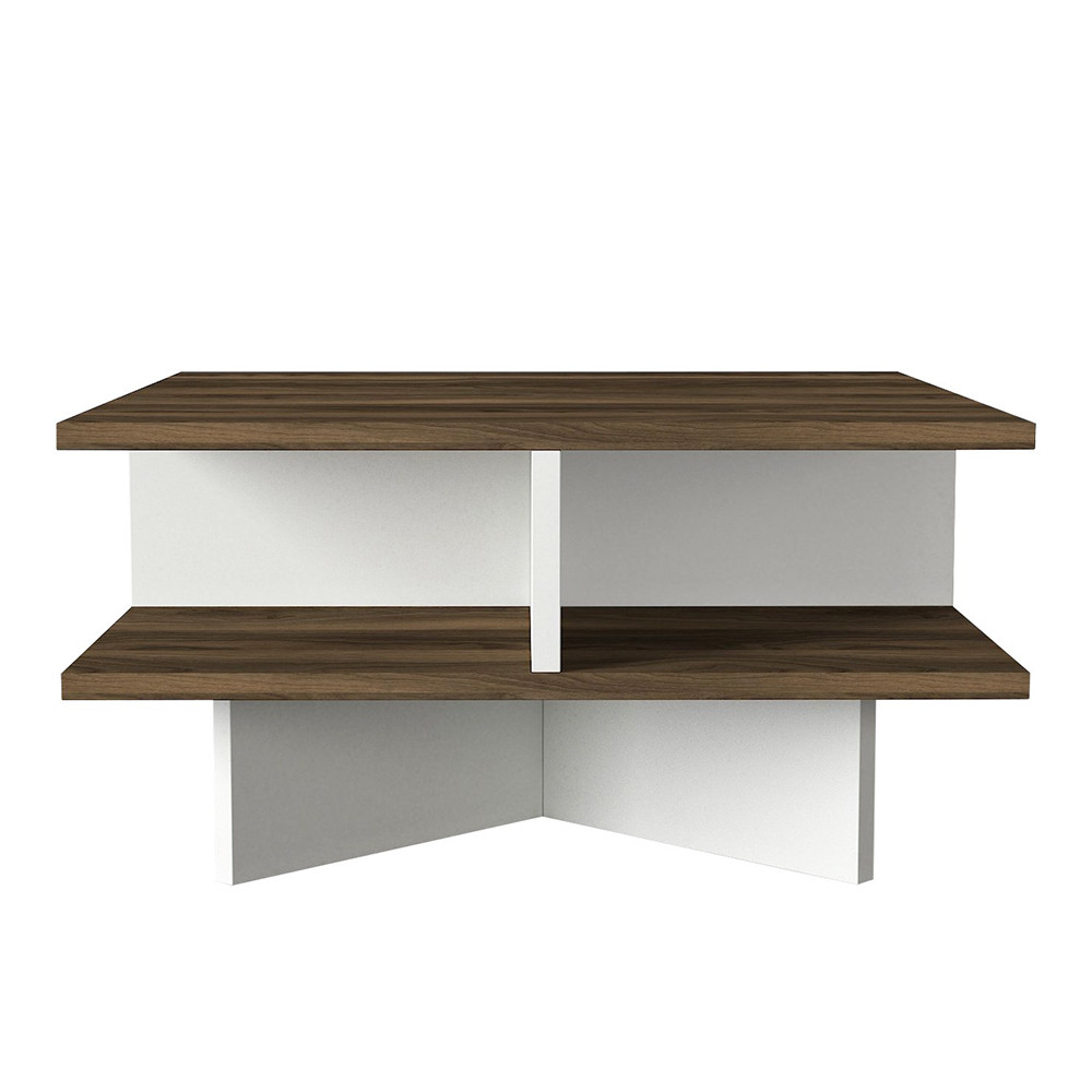 Odcień orzecha wprowadza ciepło do wnętrza, podczas gdy białe elementy dodają lekkości meblom, co skutkuje nowoczesnym i harmonijnym efektem całości.