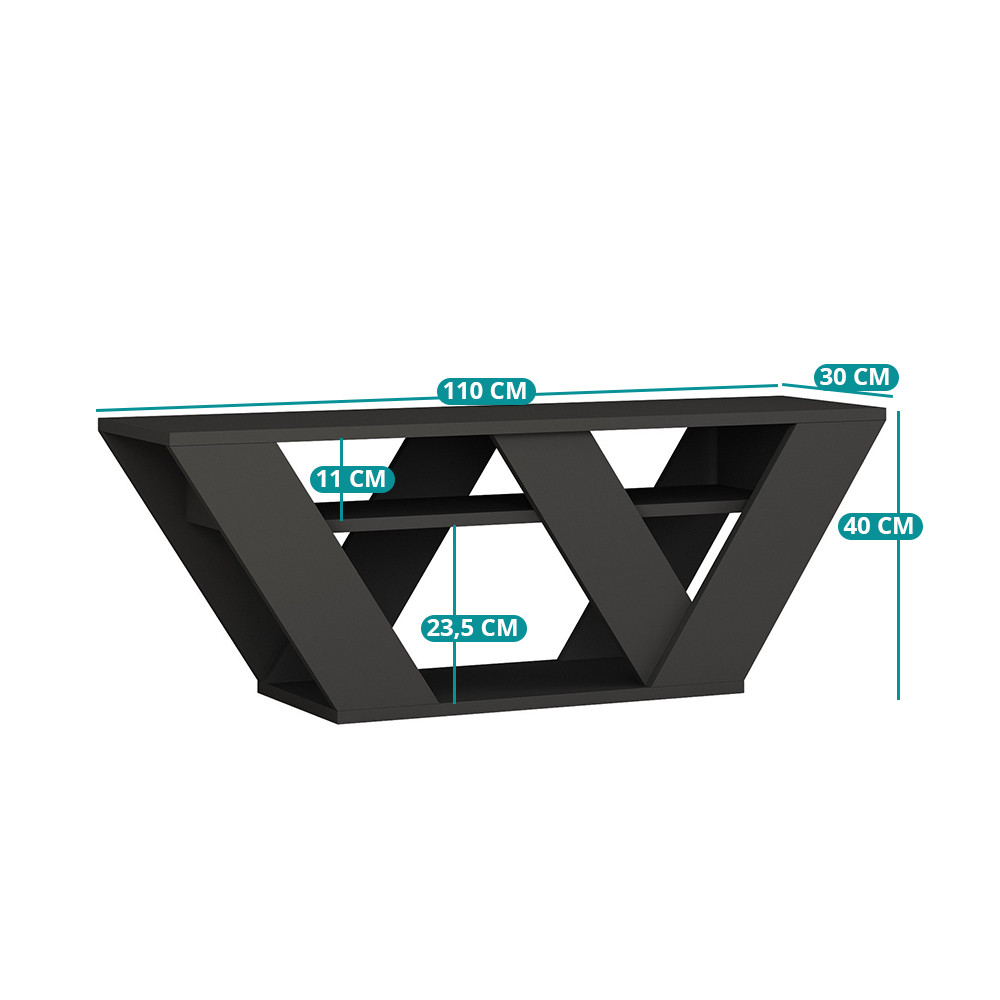 Stolik RTV w kolorze antracytowym nadaje wyjątkowy, a zarazem czysty wygląd Twojemu salonowi. Jego geometryczne kształty tworzą nowoczesną atmosferę, zapewniając stabilną podstawę dla Twojego telewizora.