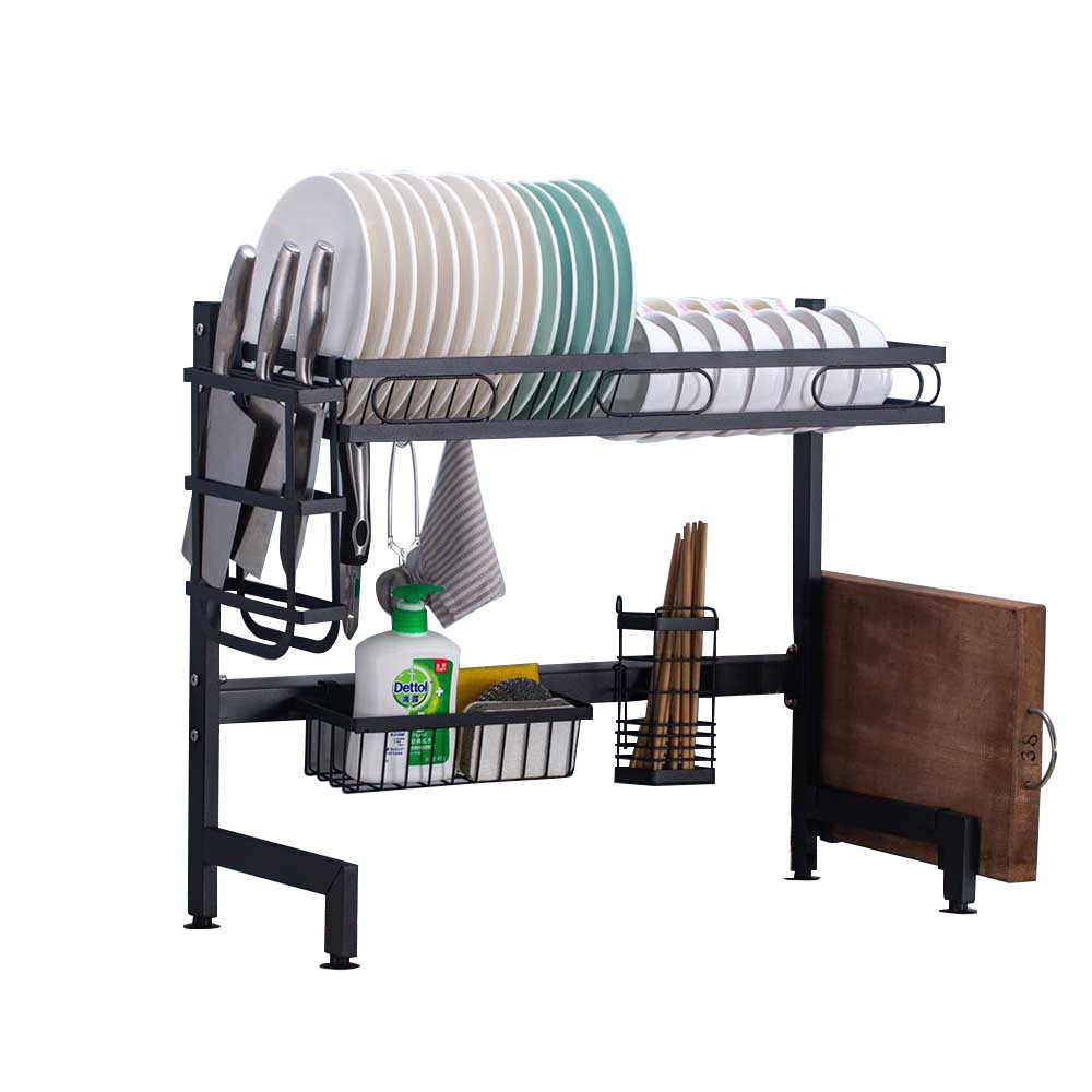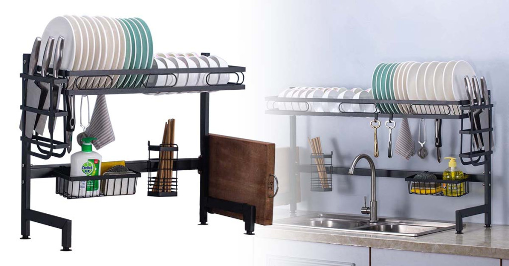 Nowoczesna, czarna metalowa konstrukcja pasuje do większości stylów kuchennych, a wiele przegródek i haczyków pozwala na indywidualne rozmieszczenie. Zarówno wersja pojedyncza, jak i podwójna pomieści wszystkie naczynia, szklanki i akcesoria, jednocześnie zajmując niewiele miejsca.