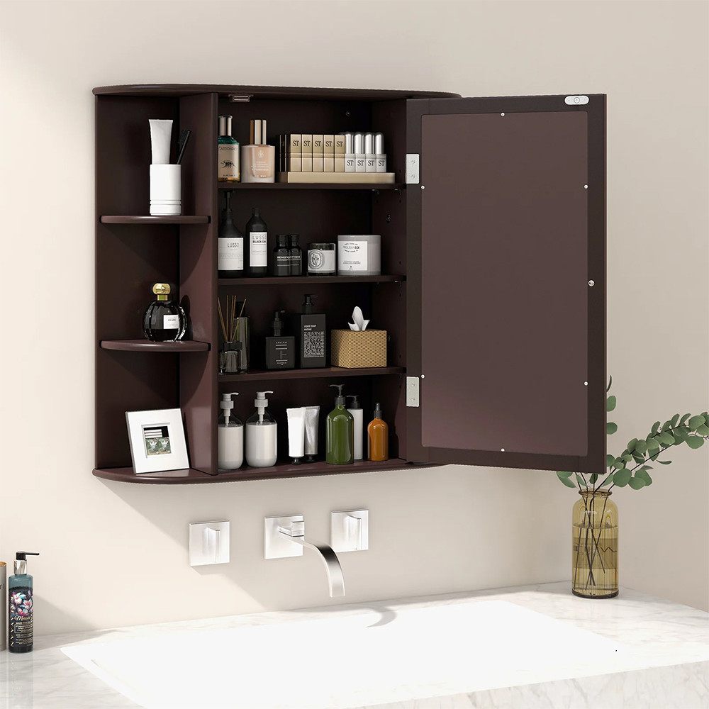 Drzwi z lustrem dają jednocześnie miejsce do przechowywania i lustro, dzięki czemu nie musisz szukać osobnego miejsca dla żadnego z nich. Zamontowana na ścianie nie zajmuje miejsca na blacie, a jednocześnie pozwala szybko sięgnąć po codziennie używane rzeczy.