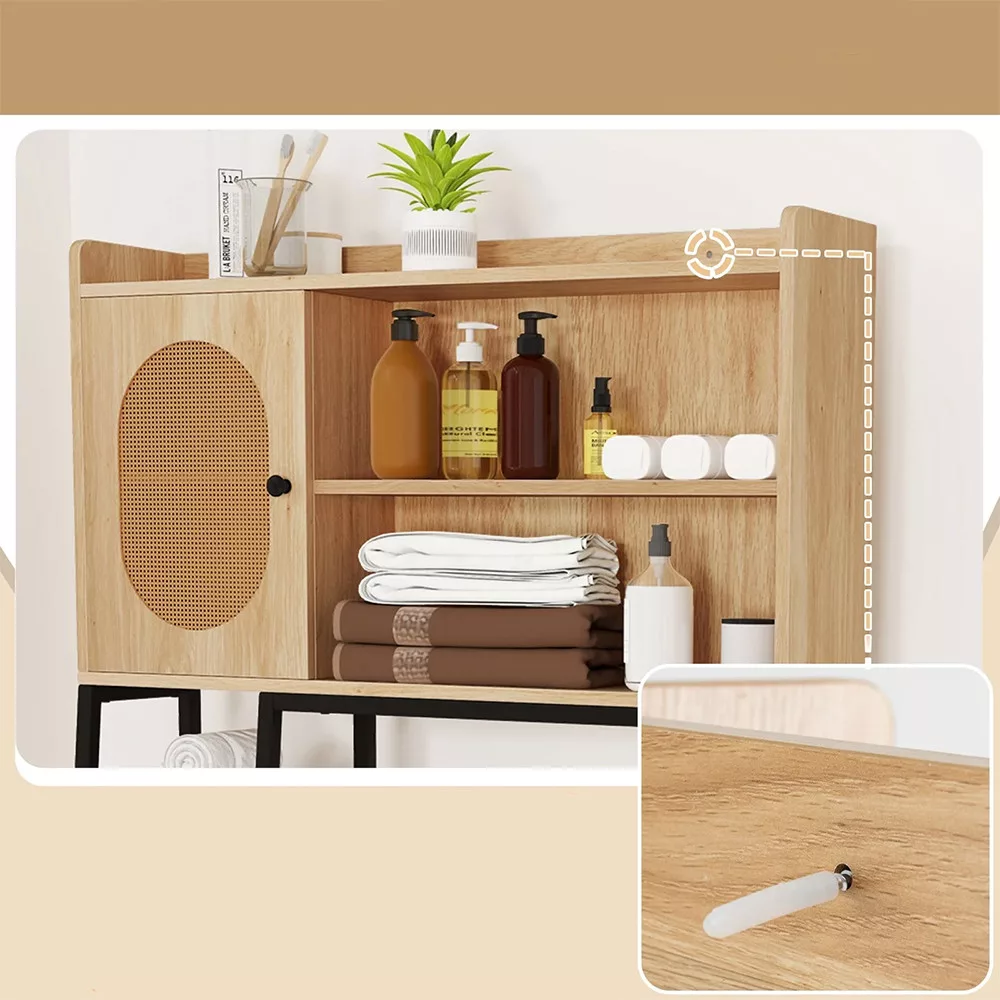 Ta szafka, która pasuje nad toaletę, wykorzystuje wcześniej niewykorzystaną przestrzeń, zapewniając dodatkowe miejsce na codzienne niezbędniki łazienkowe. To idealny wybór do mniejszych pomieszczeń.