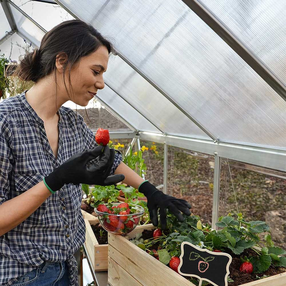 Przezroczyste panele z poliwęglanu przepuszczają naturalne światło, jednocześnie nadając szklarni nowoczesny wygląd. Lekka, a zarazem wytrzymała aluminiowa rama dyskretnie komponuje się z każdym ogrodowym krajobrazem.