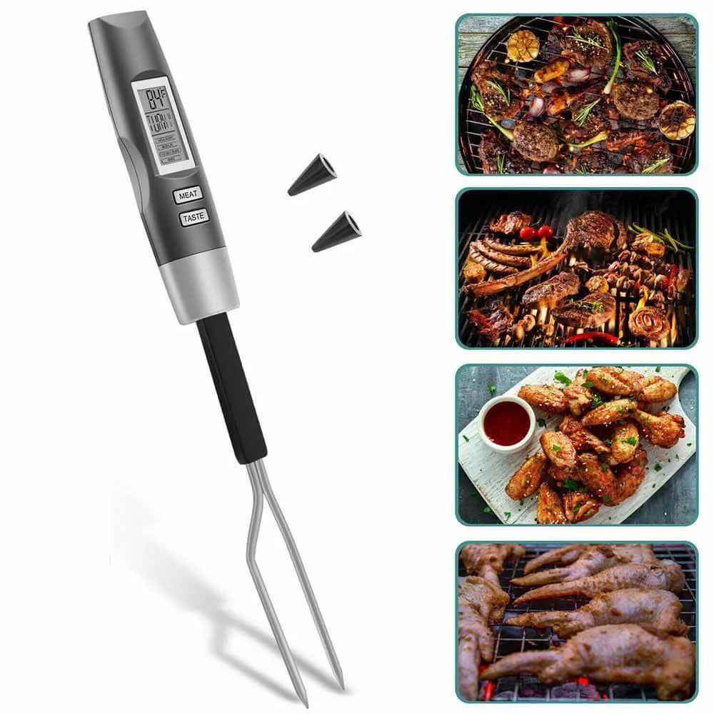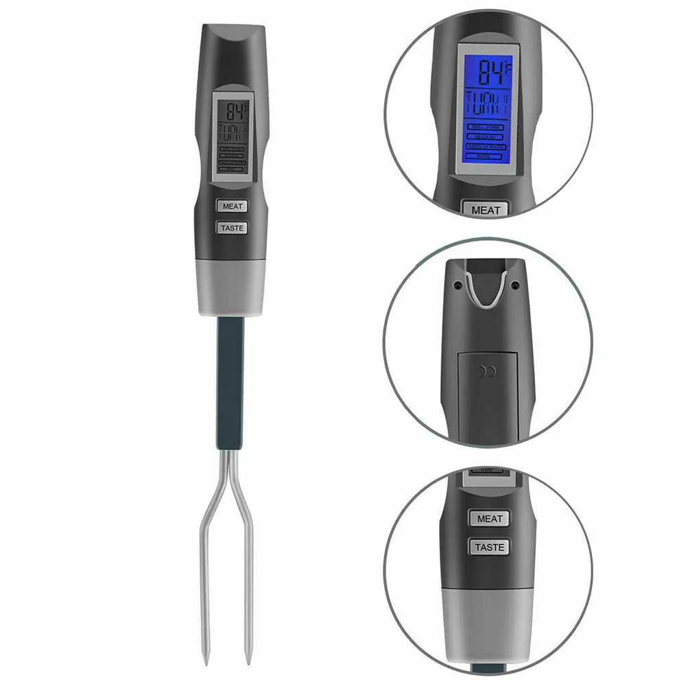 Wyświetlacz LCD miga i emituje dźwięk, gdy potrawa osiąga ustawioną temperaturę. Można ustawić tryb Celsjusza lub Fahrenheita. Kompaktowy design ułatwia użycie podczas grillowania i gotowania.