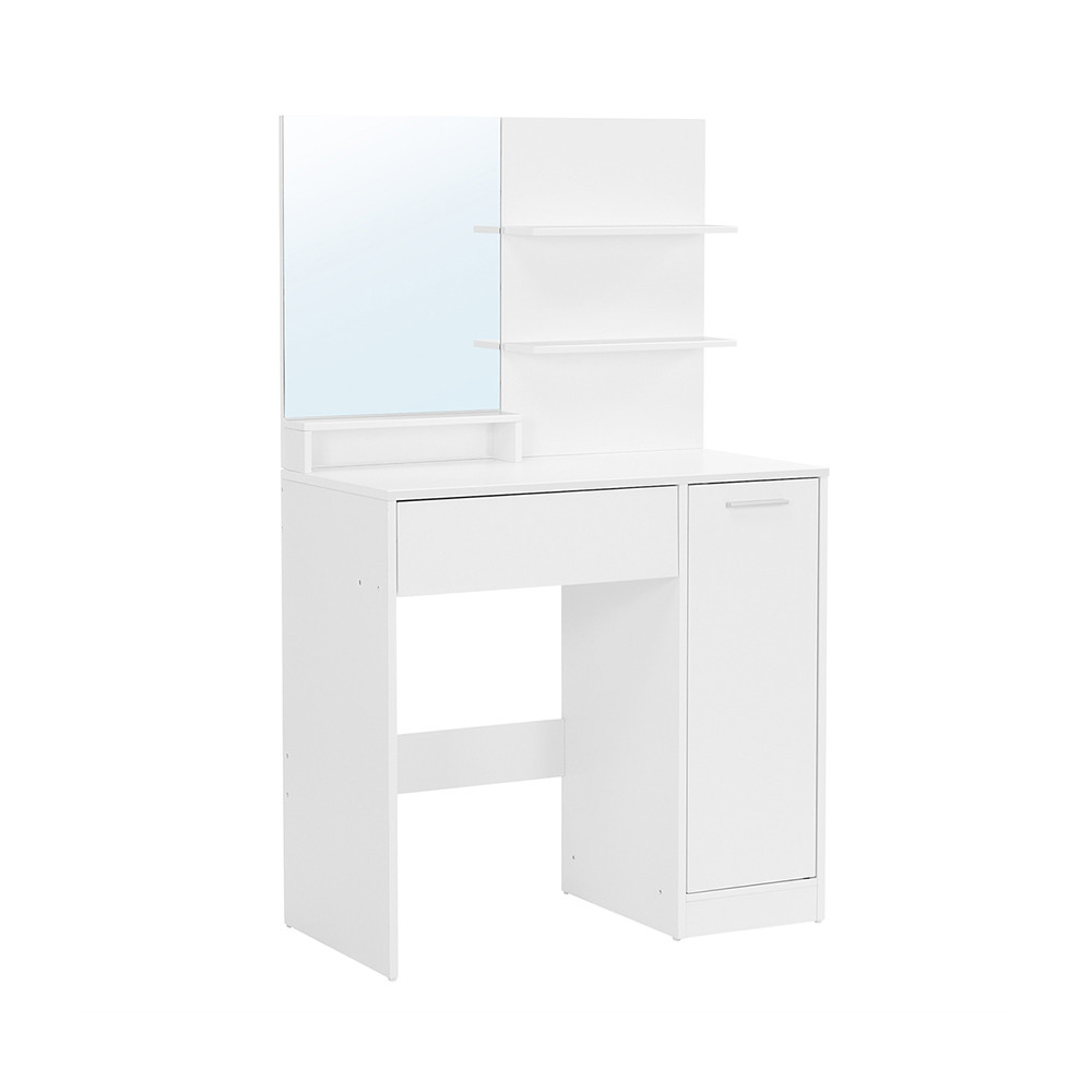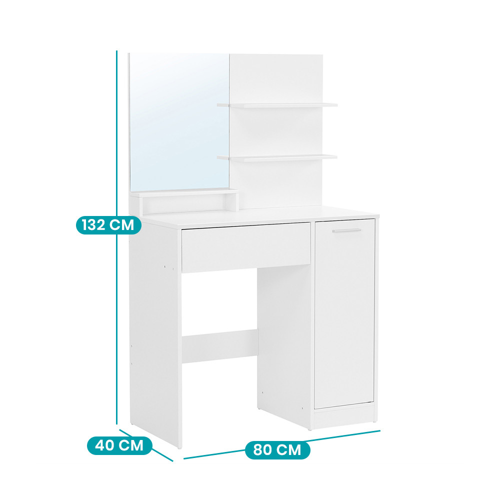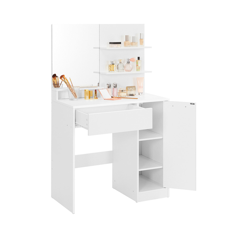 Pojemna szuflada, półki i boczna szafka pozwalają przechowywać kosmetyki, perfumy i akcesoria w idealnym porządku. Wszystko masz zawsze pod ręką.