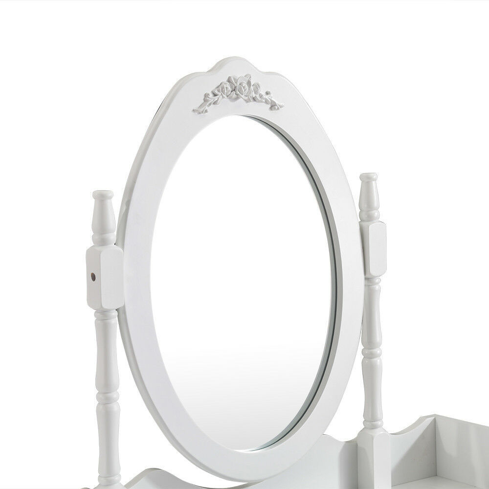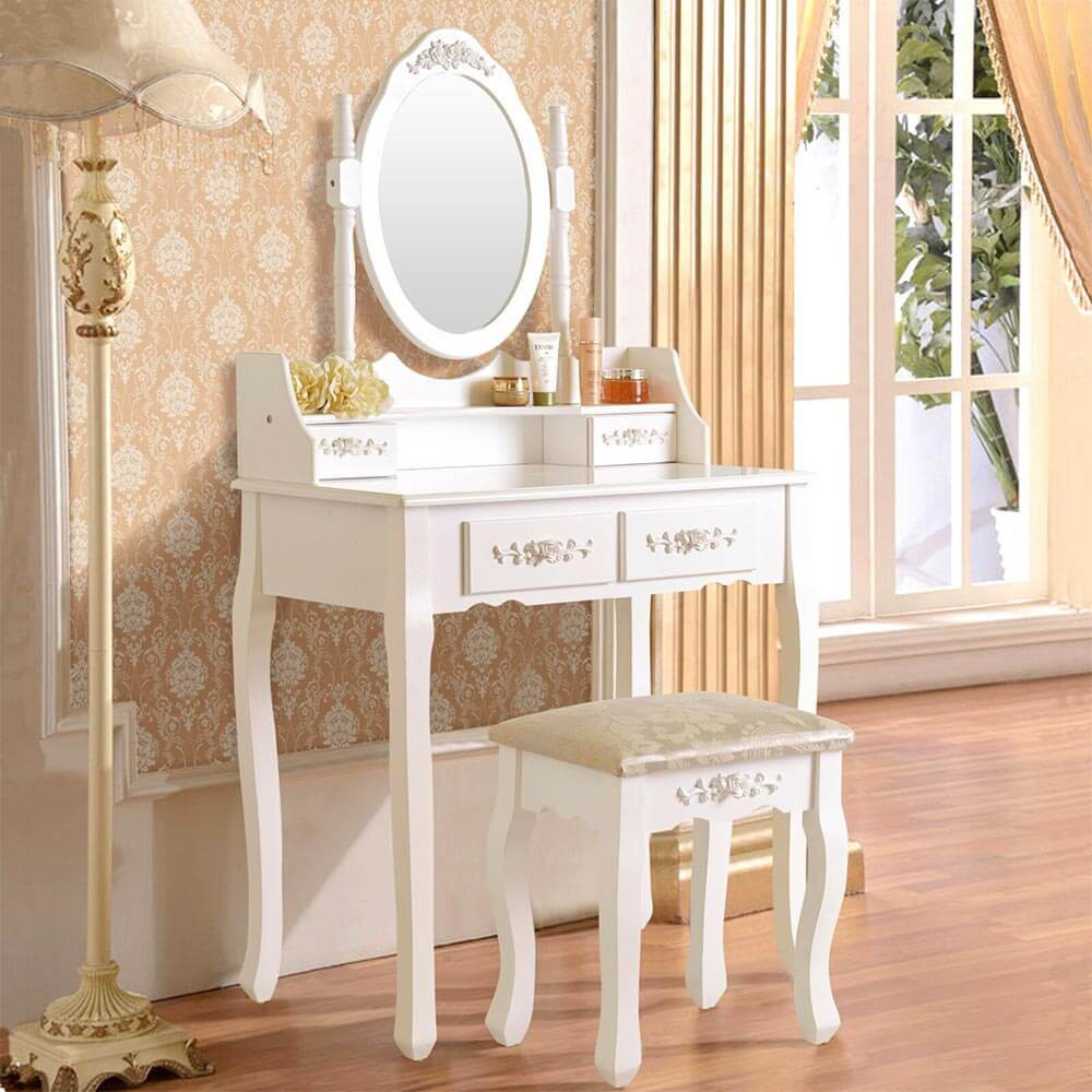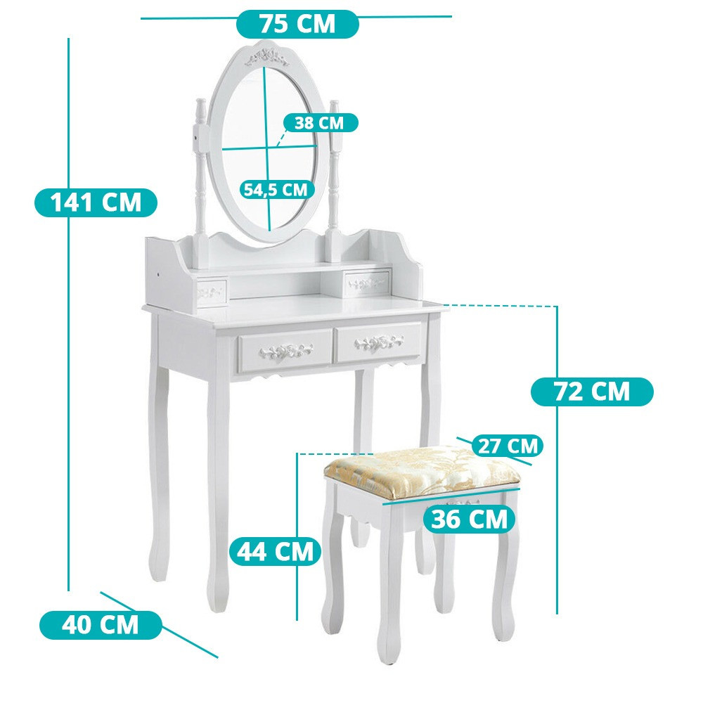 Owalne lustro doskonale sprawdza się podczas wykonywania makijażu czy stylizacji włosów, a jego odpowiednia wielkość pozwala na pełny podgląd twarzy. Przestronny blat toaletki oferuje dodatkowe miejsce na najczęściej używane kosmetyki.