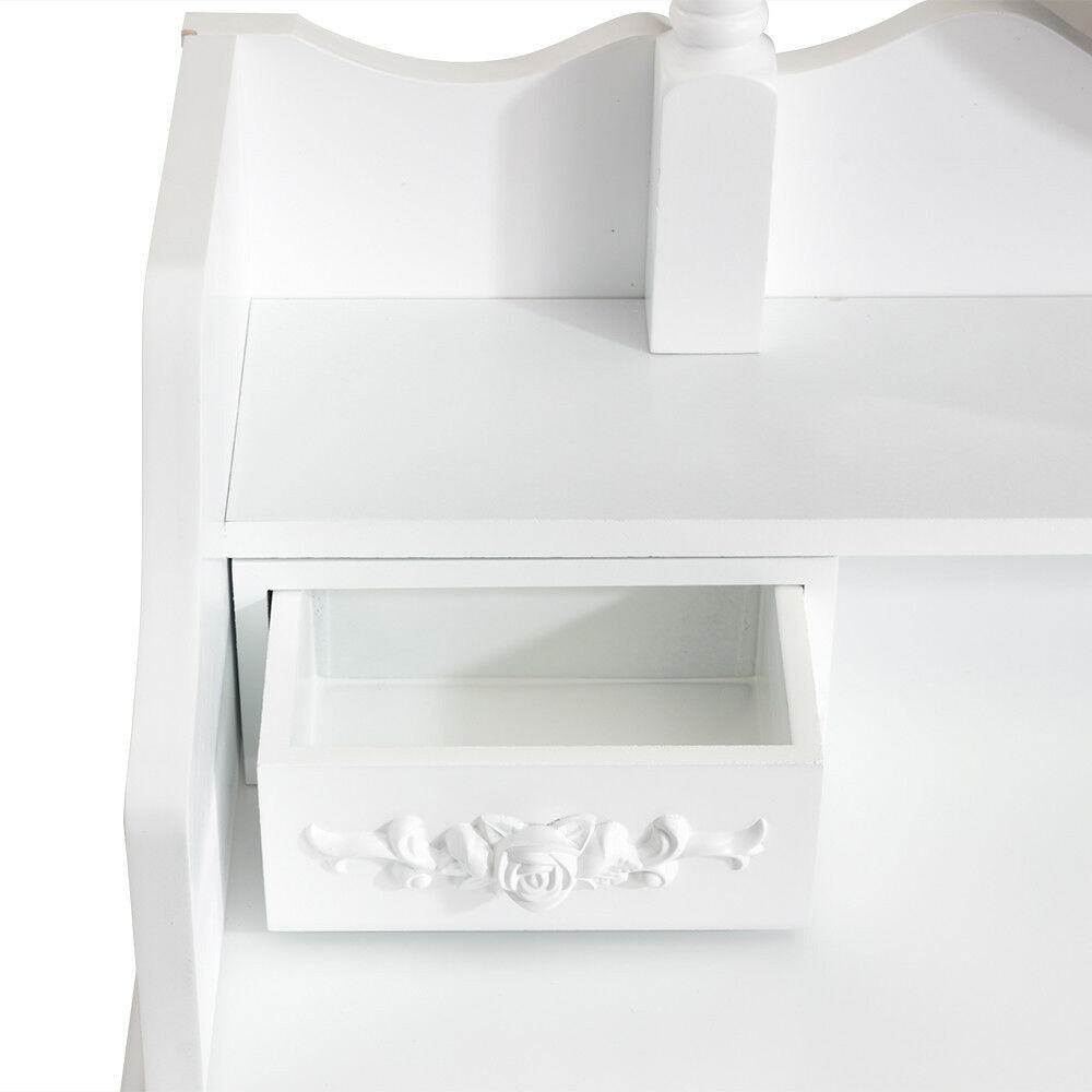 Toaletka posiada cztery szuflady: dwie mniejsze w górnej części z półką oraz dwie większe pod blatem, dzięki czemu wszystkie potrzebne akcesoria są zawsze w zasięgu ręki. Zdejmowany górny moduł umożliwia przekształcenie mebla w biurko, co sprawia, że doskonale wpasuje się w każde wnętrze.