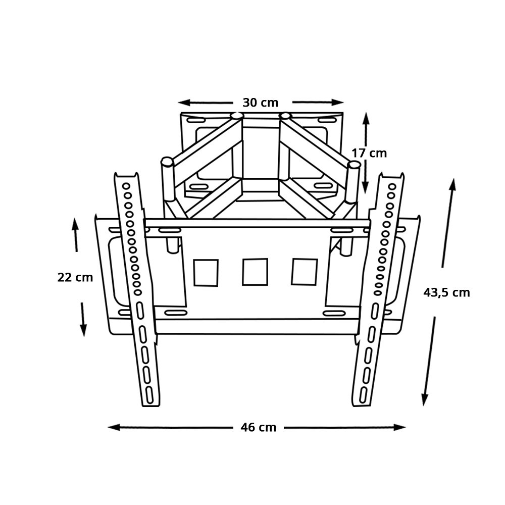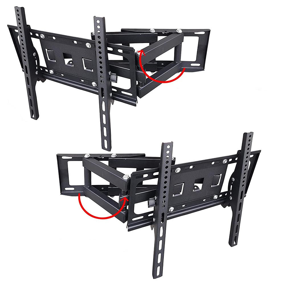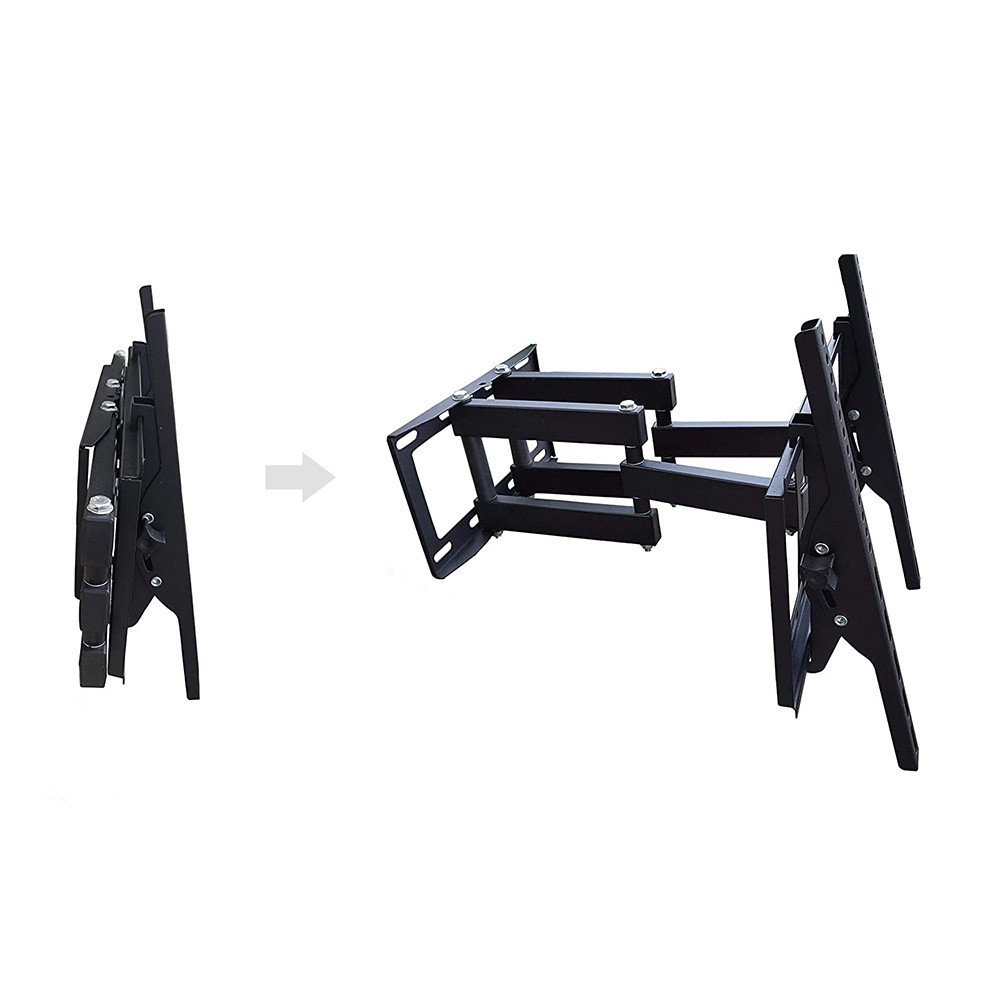 Solidna stalowa konstrukcja zapewnia stabilność, ale ważne jest, aby uchwyt zamontować na odpowiednio wytrzymałej powierzchni. Nie zaleca się montażu na ścianach o słabszej nośności. W stanie złożonym uchwyt zajmuje niewiele miejsca, mając tylko 6 cm głębokości, natomiast w pełni wysunięty osiąga głębokość 43 cm, co pozwala na montaż bliżej lub dalej od ściany.