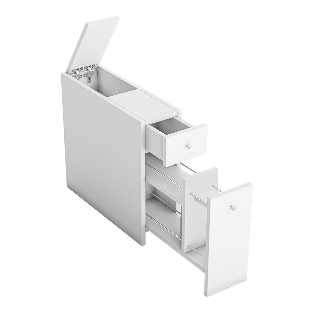 Smukły design pozwala na umieszczenie szafki nawet obok umywalki lub w ciasnych miejscach. Przekształca wcześniej niewykorzystaną przestrzeń w schludne, funkcjonalne rozwiązanie do przechowywania.