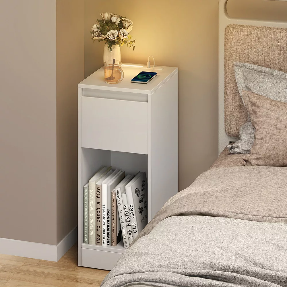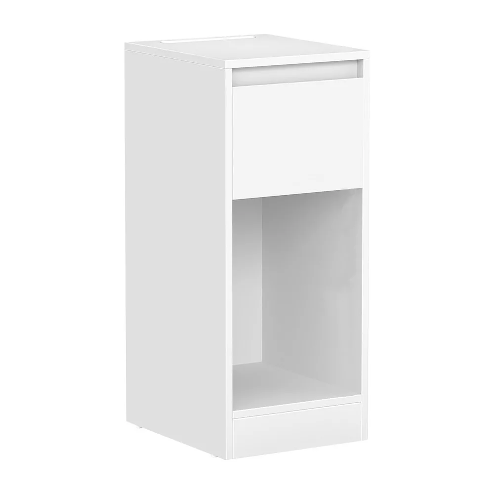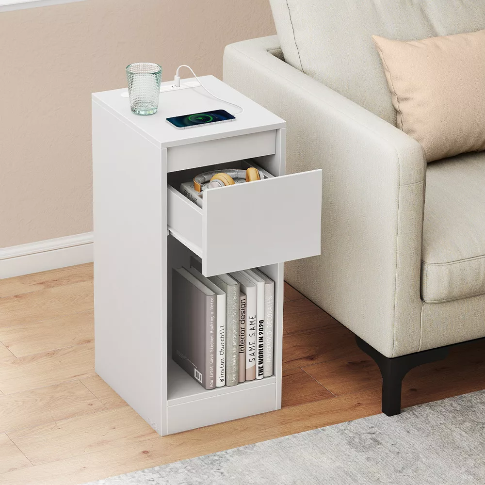 Jego kompaktowy rozmiar pozwala na łatwe dopasowanie do węższych przestrzeni, takich jak obok łóżka czy w mniejszych mieszkaniach. Szuflada i dolna półka zapewniają wystarczająco dużo miejsca na przechowywanie książek, akcesoriów lub innych drobnych przedmiotów.