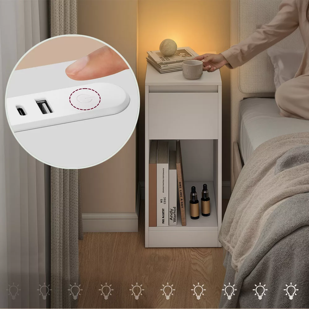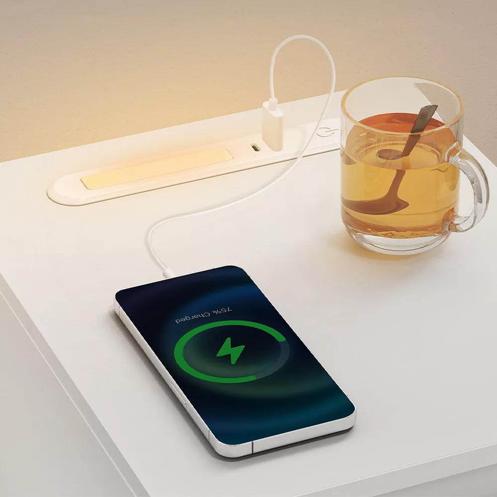 Dzięki praktycznym portom USB-A i USB-C, nie ma potrzeby używania dodatkowych przedłużaczy czy ładowarek. Twój telefon lub inne urządzenia zawsze będą w zasięgu ręki i naładowane, nawet w nocy.