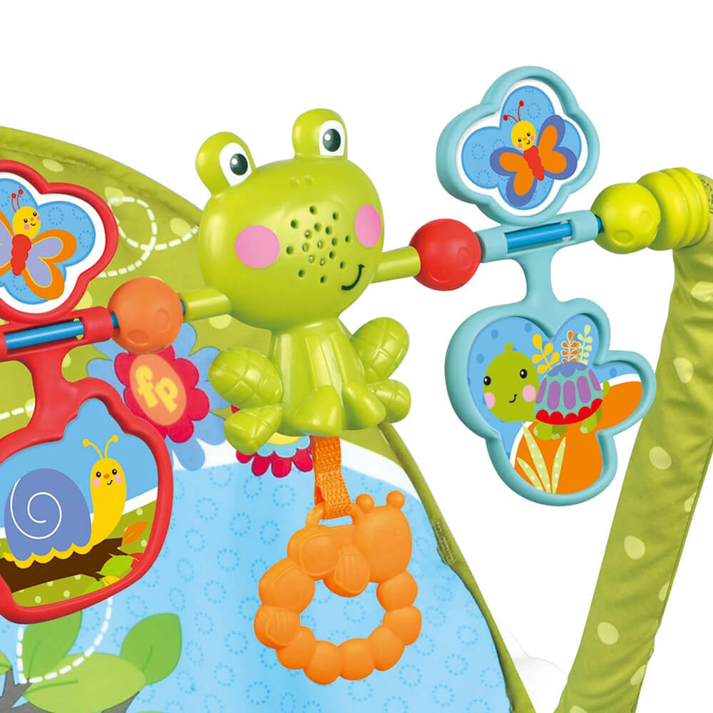 Do bujaczka dołączony jest uroczy pałąk z zabawkami, który oferuje maluchowi świetną zabawę, jednocześnie wspierając rozwój sensoryczny i motoryczny. Pałąk jest łatwo dostępny, a kolorowe i urocze figurki zapewniają wyjątkową frajdę.
