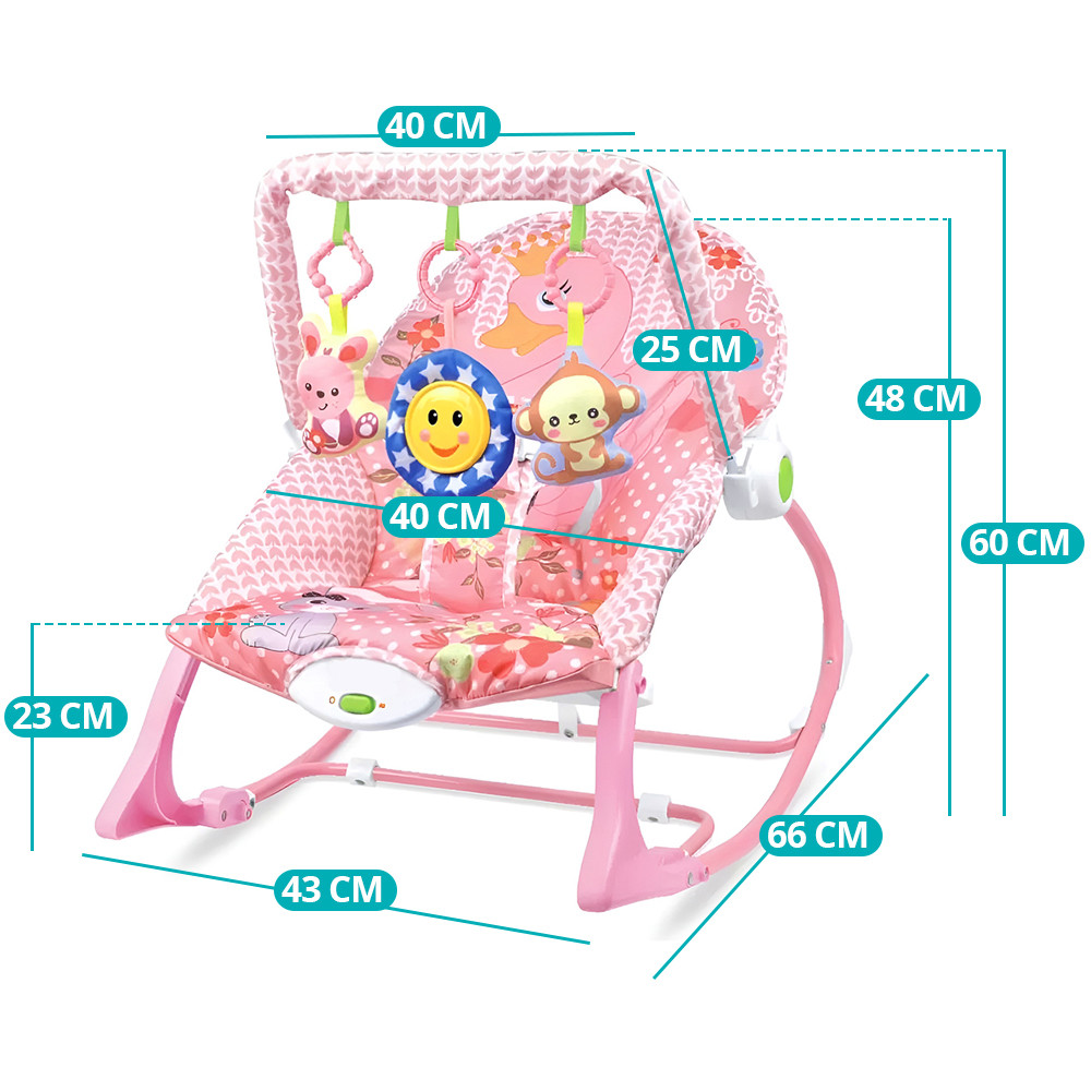 A pihenőszékhez egy aranyos játékhíd tartozik, amely szórakoztató játékokat kínál a babának, serkentve érzékszervi fejlődését és motoros készségeit. A játékhíd magassága kényelmesen elérhető, a színes és kedves figurák pedig szórakoztató játékélményt nyújtanak a kicsiknek.