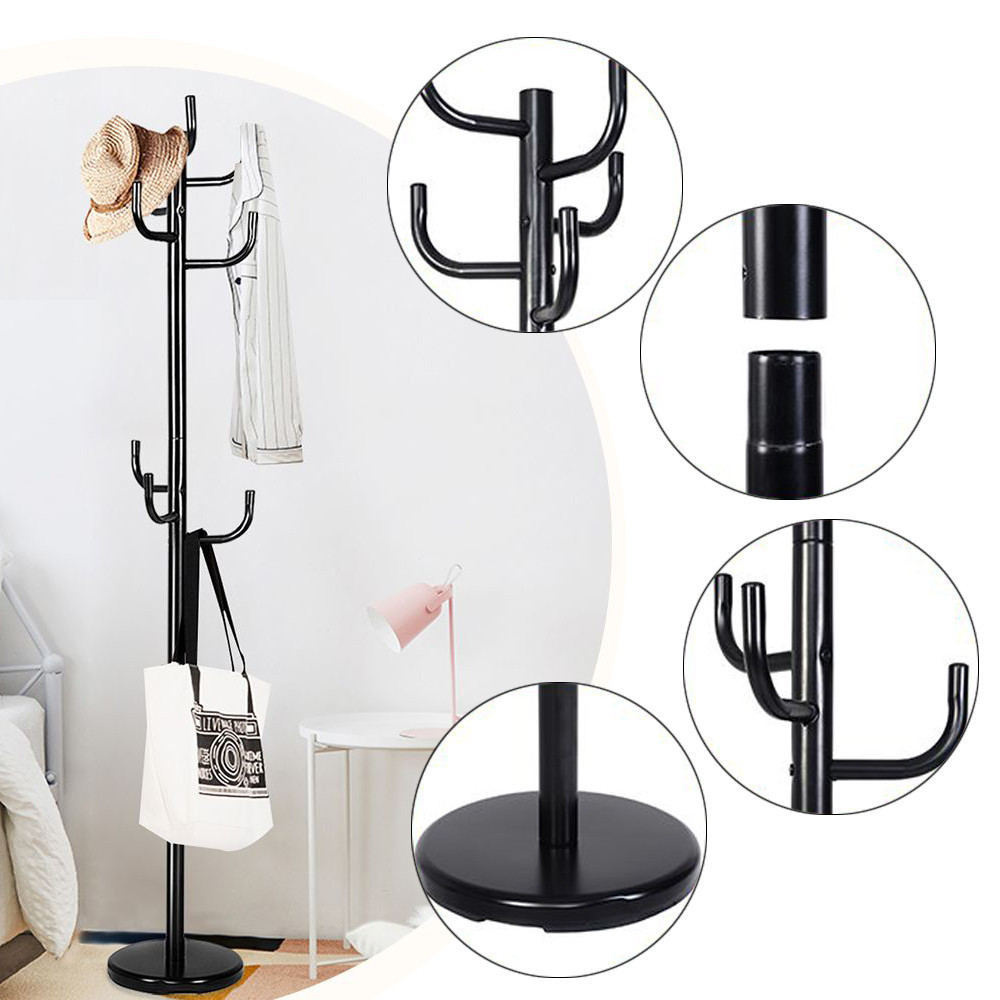 Dzięki stabilnej, malowanej proszkowo metalowej ramie i ciężkiej okrągłej podstawie, ten wieszak zapewnia doskonałą stabilność i może udźwignąć do 25 kg. 8 haków jest idealnych do jednoczesnego wieszania wielu ubrań.