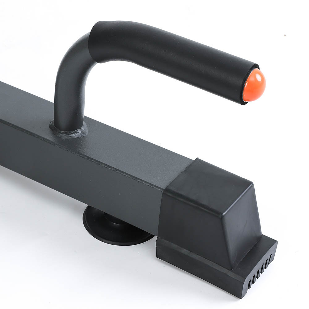 Sprzęt w kolorze czarnym pasuje do każdego wnętrza – salonu, pokoju nastolatka czy siłowni. Można go ustawić przy ścianie, co oszczędza miejsce. Stopy wyposażone są w ochronne nakładki, które chronią podłogę przed uszkodzeniami.