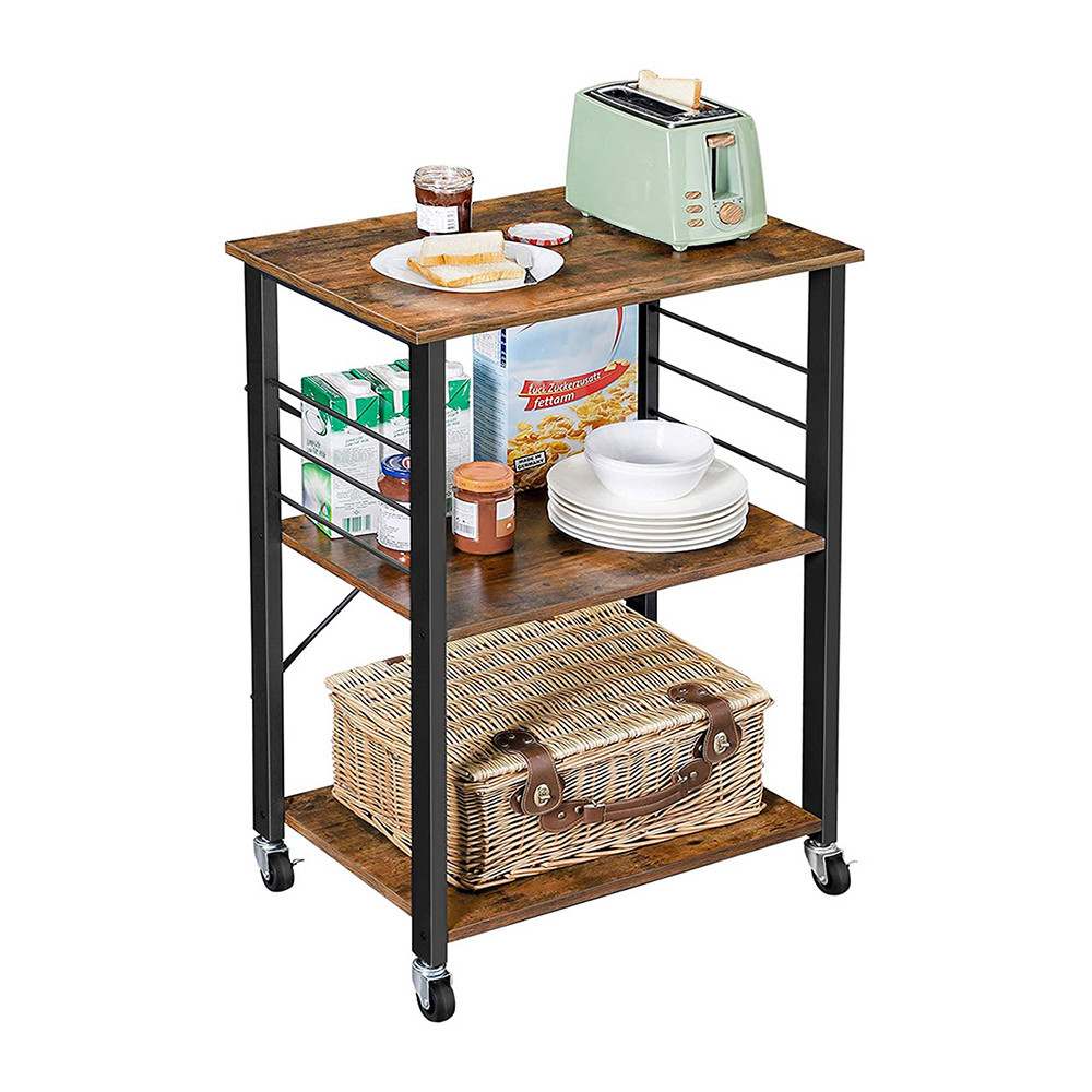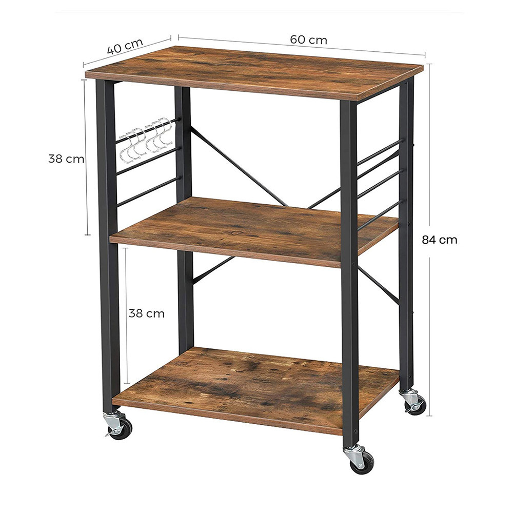 Jeśli ciągle przestawiasz swoje urządzenia kuchenne, ten wózek jest odpowiedzią: z trzema dobrze rozmieszczonymi półkami zapewnia wystarczającą przestrzeń na mikrofalówkę, toster lub inne niezbędne akcesoria kuchenne – wszystko w uderzającym industrialnym stylu.